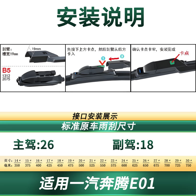 Upgrade your FAW Bestune E01 with these professional frameless windshield wiper blades. Featuring silent rubber strips for streak-free visibility in any weather.