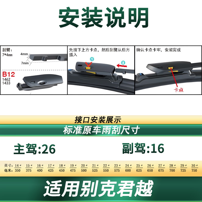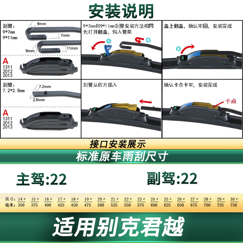 Professional Frameless Windshield Wiper Blades Multipurpose Silent Rubber Strips for Buick LaCrosse