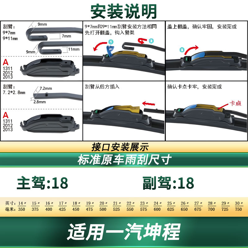 Upgrade your FAW Kuncheng with our professional frameless windshield wiper blades. Featuring silent rubber technology for clear visibility and easy installation.