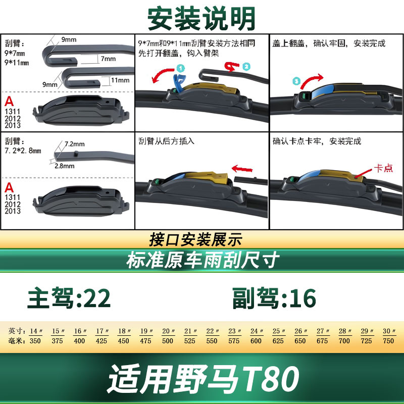 Professional Frameless Windshield Wiper Blades, Silent Rubber Strip Multi-Functional Car Wipers Compatible with Mustang T80