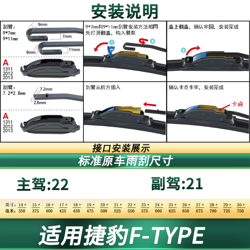 Professional Frameless Windshield Wiper Blades, Silent Rubber Strip Multi-Function Fit for Jaguar F-TYPE