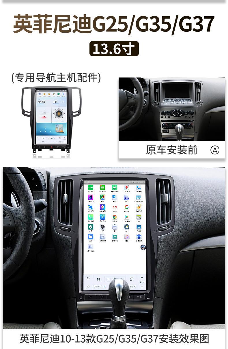 - Specifically designed to integrate with the dashboard layout of Infiniti G series models from 2007 to 2013.