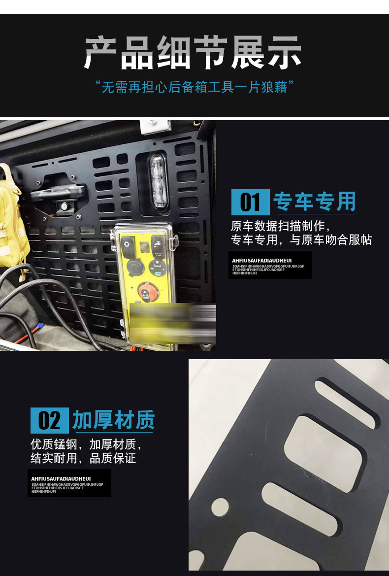 - Secures tools, recovery gear, and off-road equipment to prevent shifting during transit.
