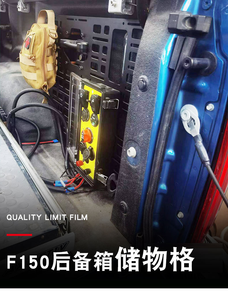 Tags: bedside grid panel, f150 bed storage, pickup bed management, raptor cargo organizer, rear luggage rack, truck bed molle panel, truck bed tool rack