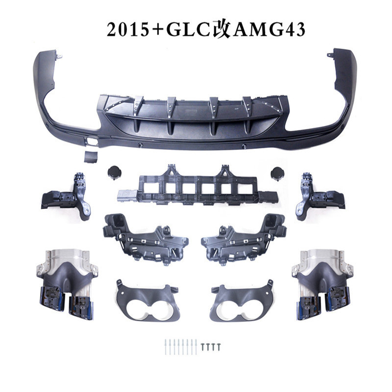 Tags: AMG style body kit, car rear valance, exhaust muffler pipe, exterior modification, GLC diffuser, quad exhaust tips, rear bumper lip