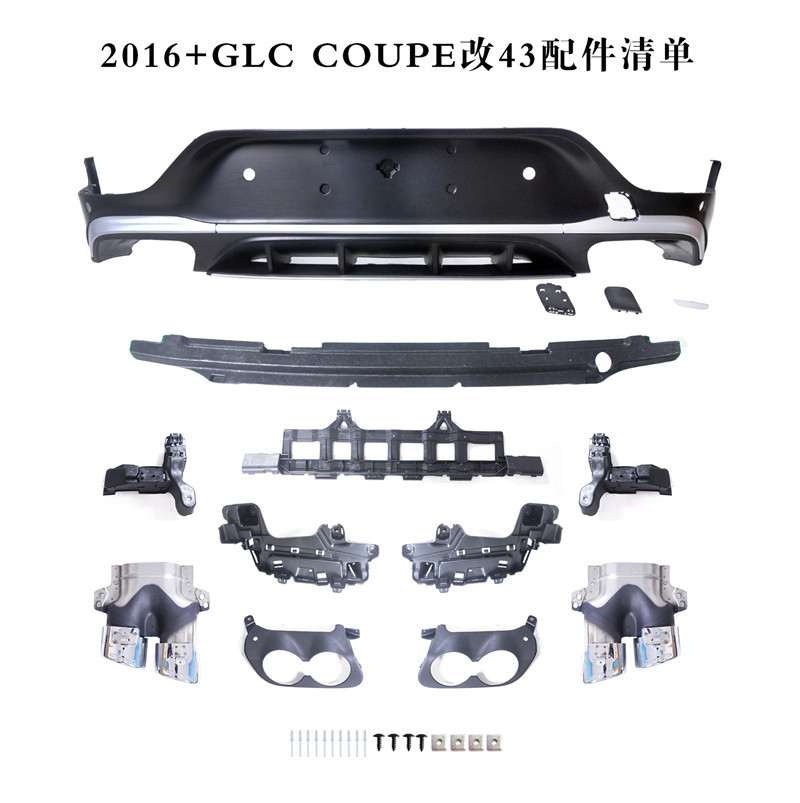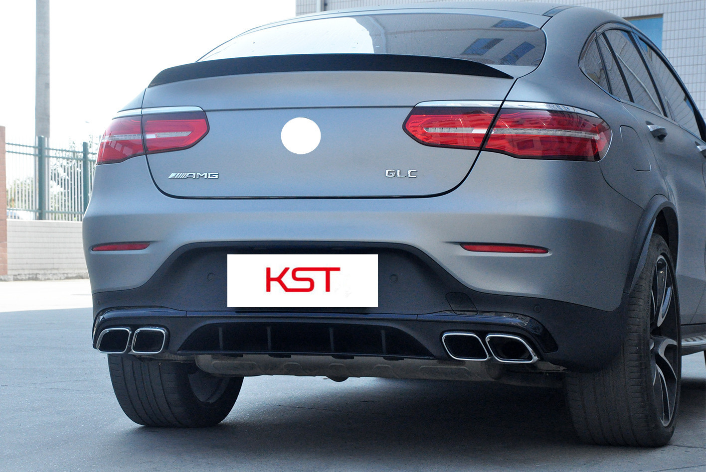 Upgrade your Mercedes-Benz GLC Coupe with this AMG style rear bumper diffuser and quad exhaust tips. Durable ABS and stainless steel for a premium sporty look.