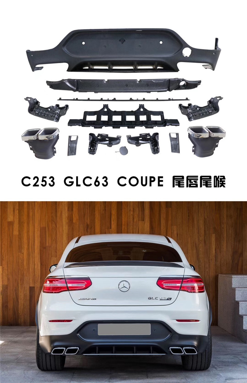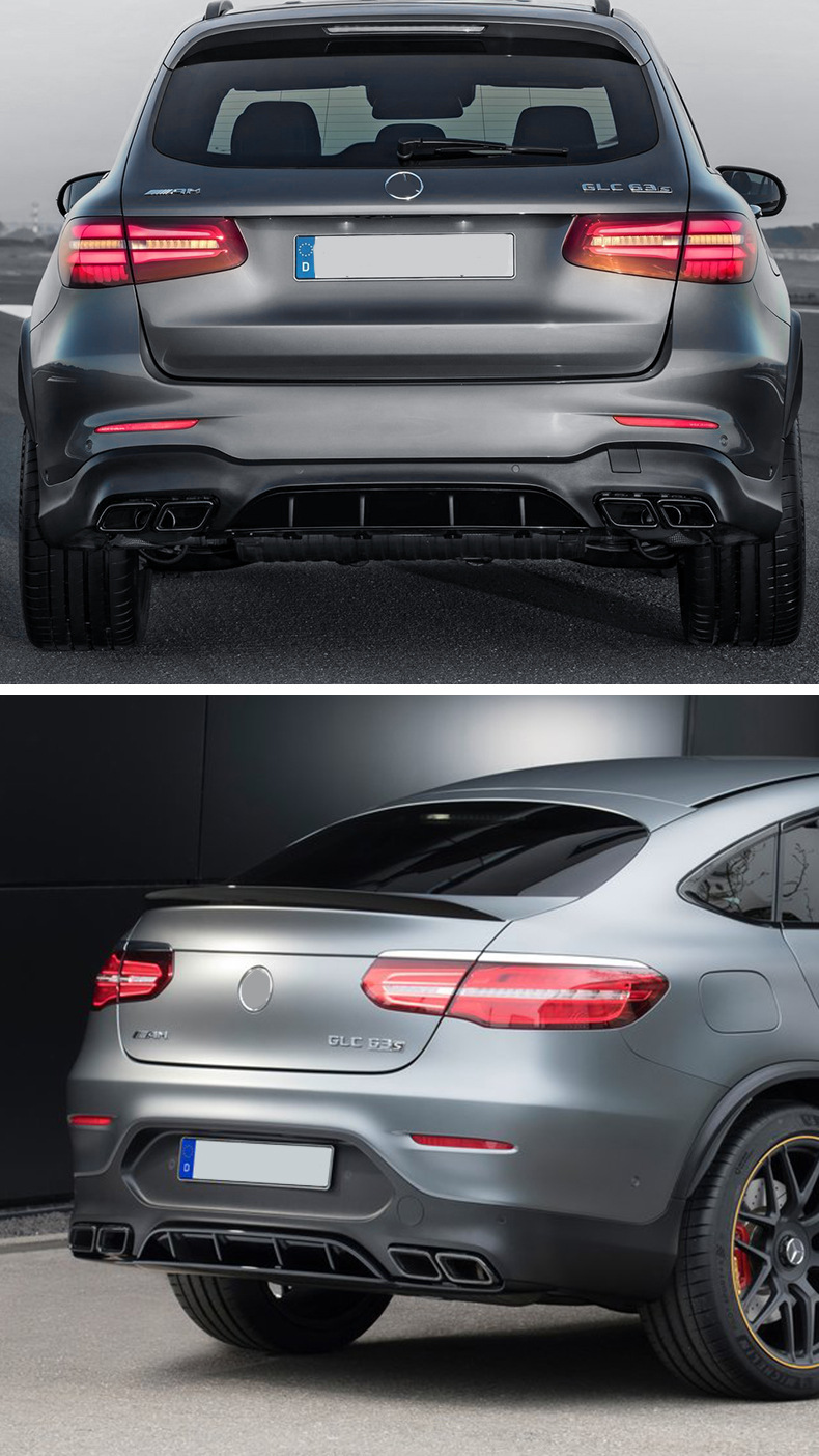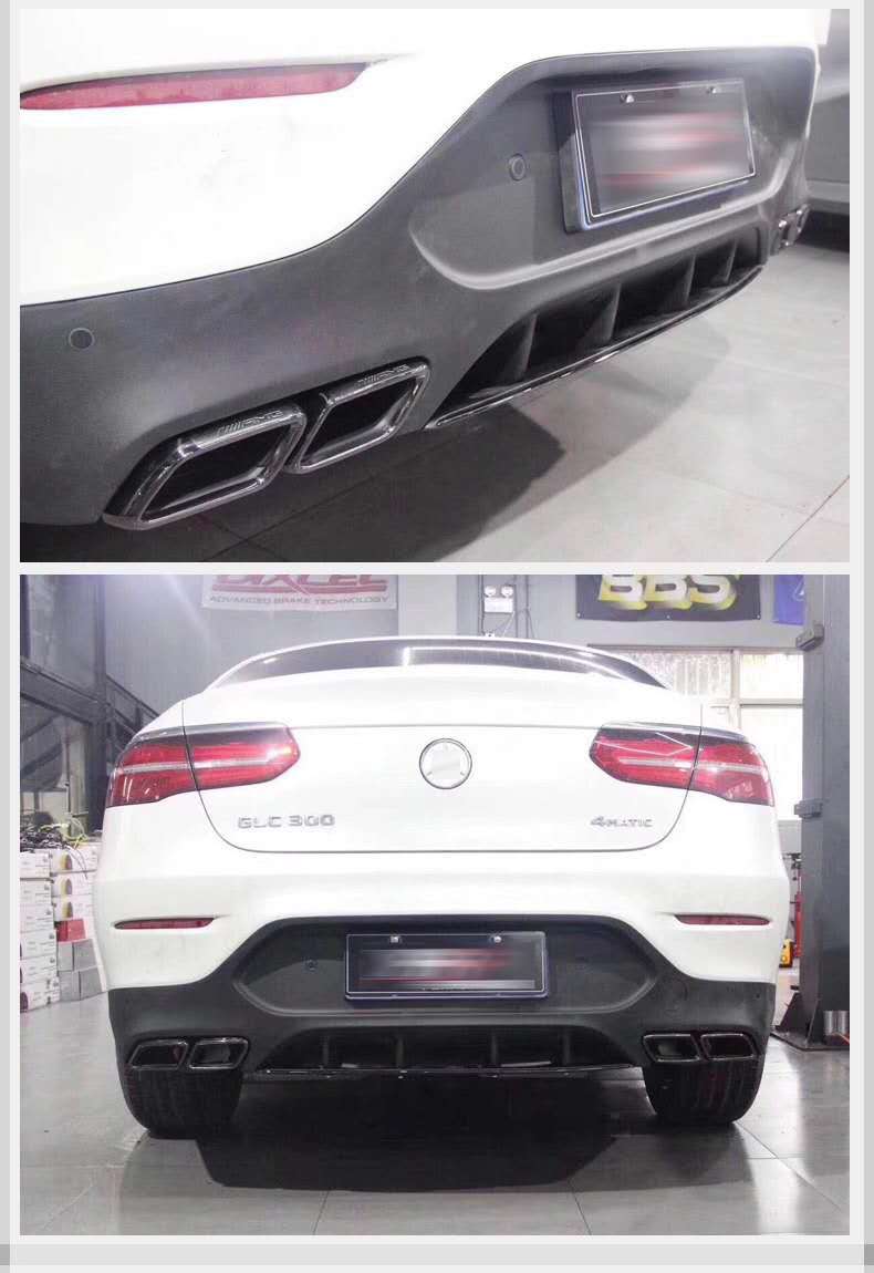 Rear Bumper Lip Diffuser and Exhaust Muffler Tips Kit for Mercedes GLC AMG GLC43 GLC63S Coupe X253