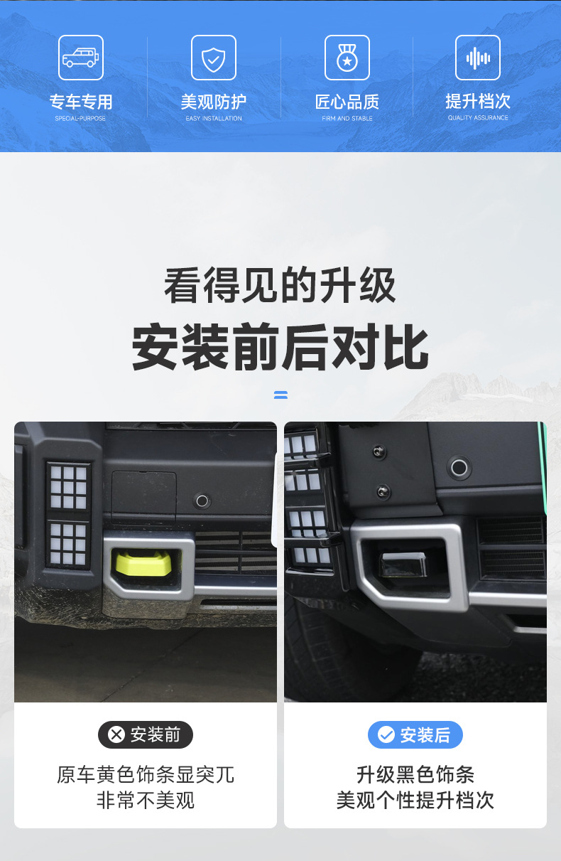 - Custom fit design specifically profiled for the Jetour T2 Traveler rear bumper tow hook aperture.