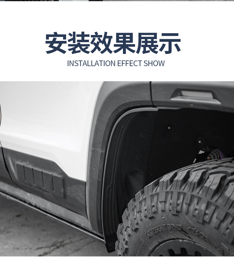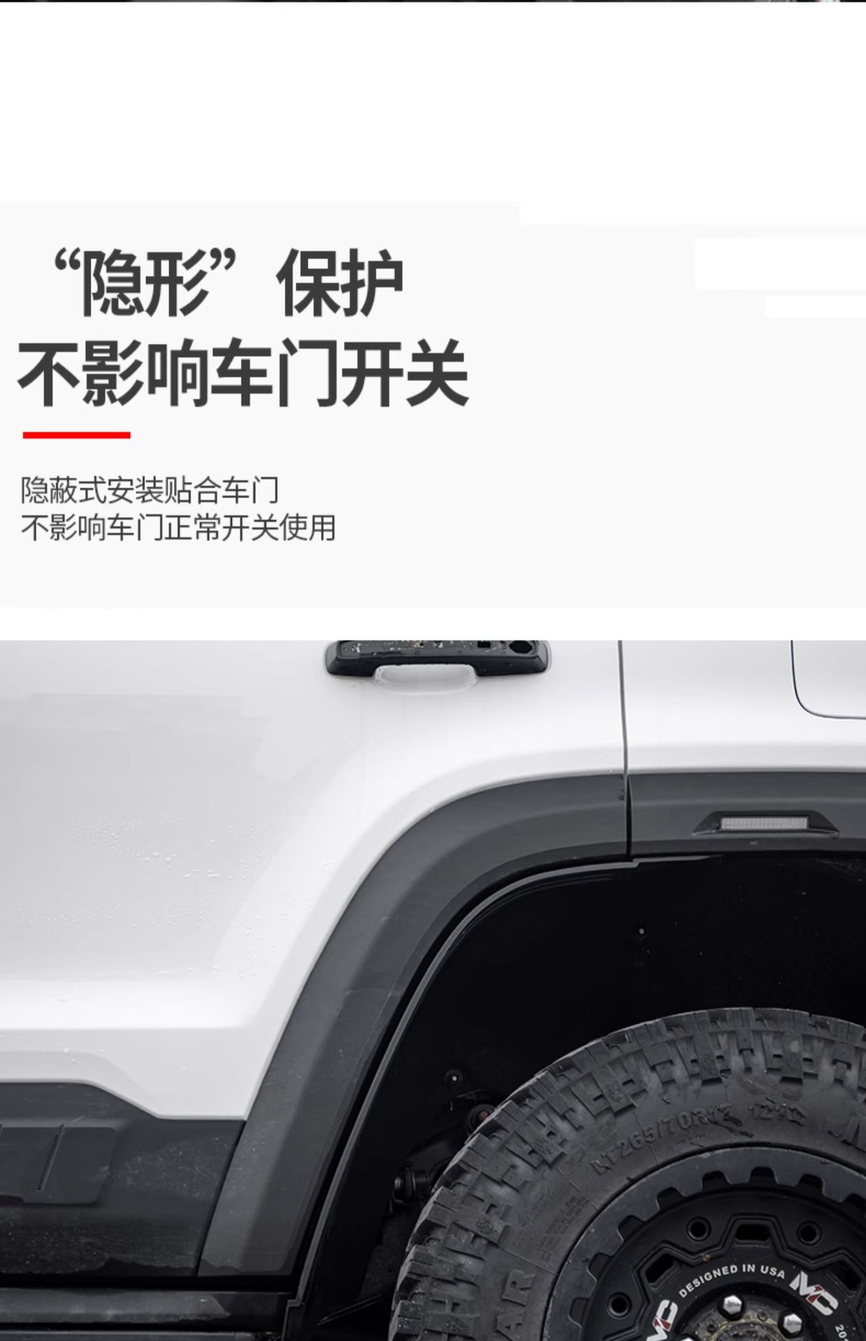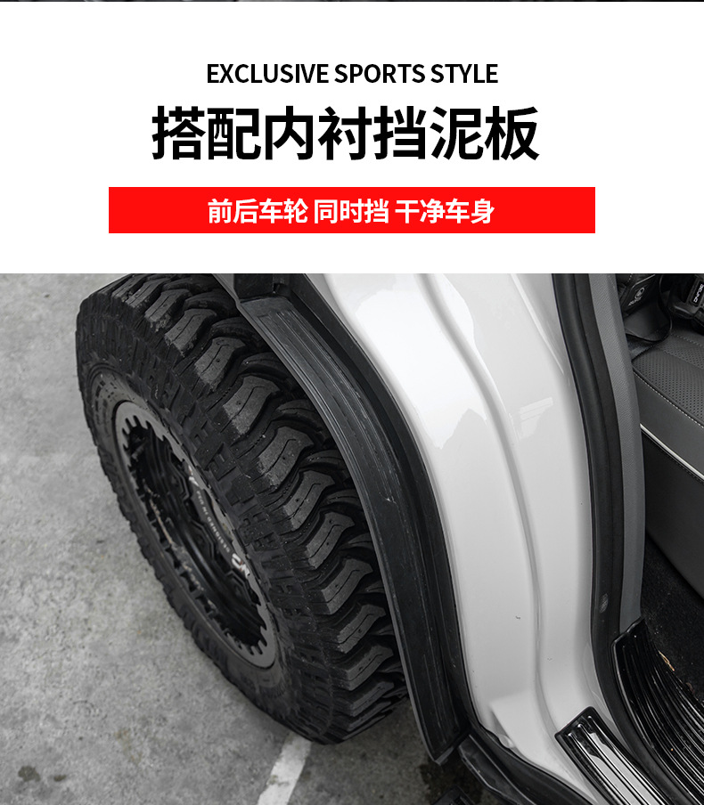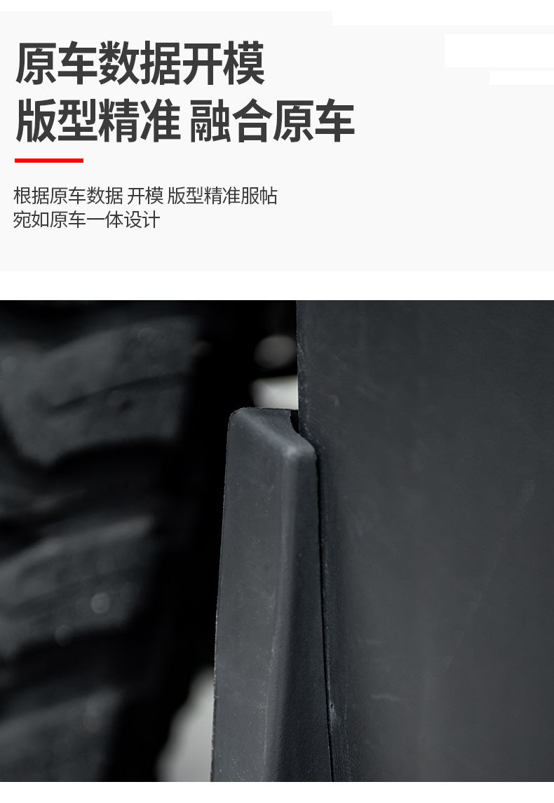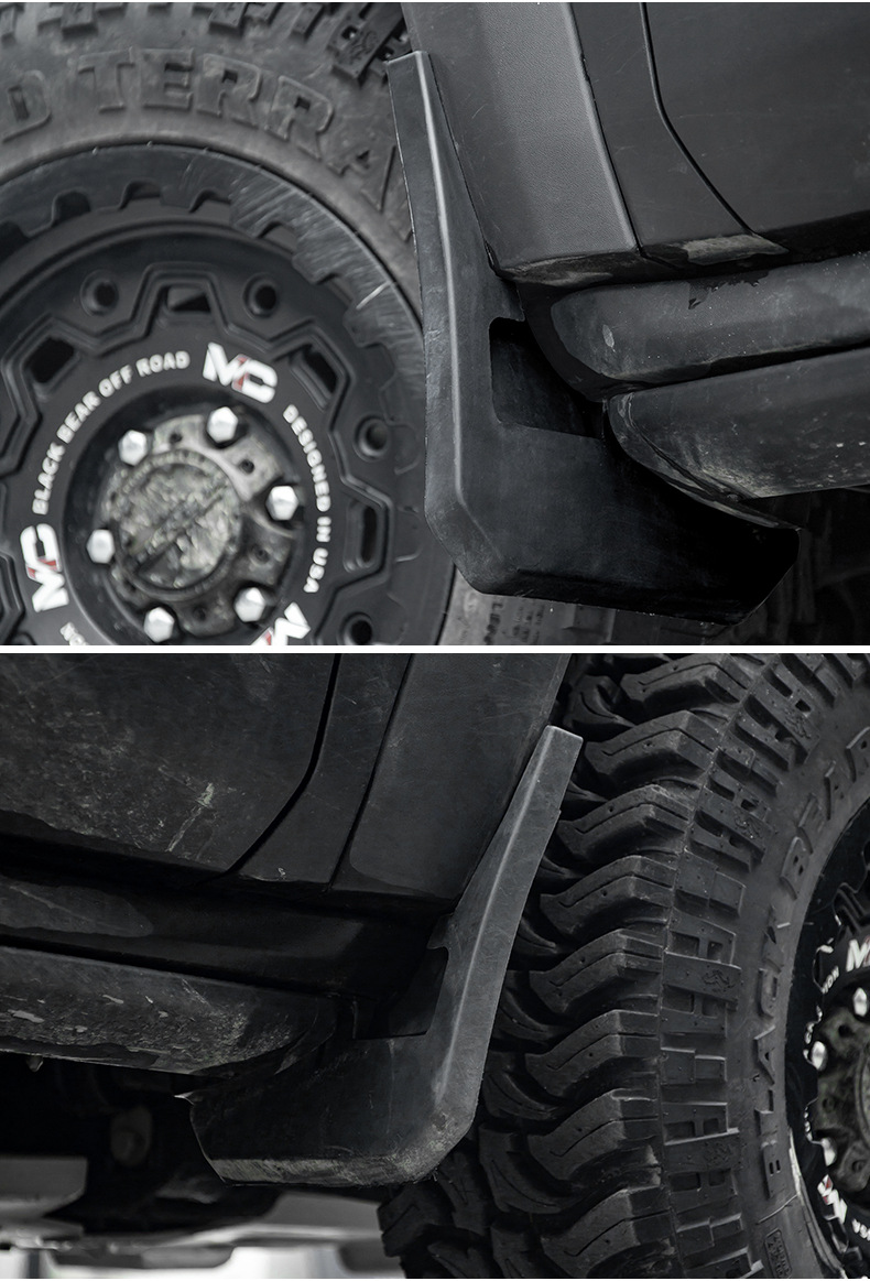 - Effectively prevents splash damage to side panels and rear doors, maintaining vehicle cleanliness in off-road conditions.