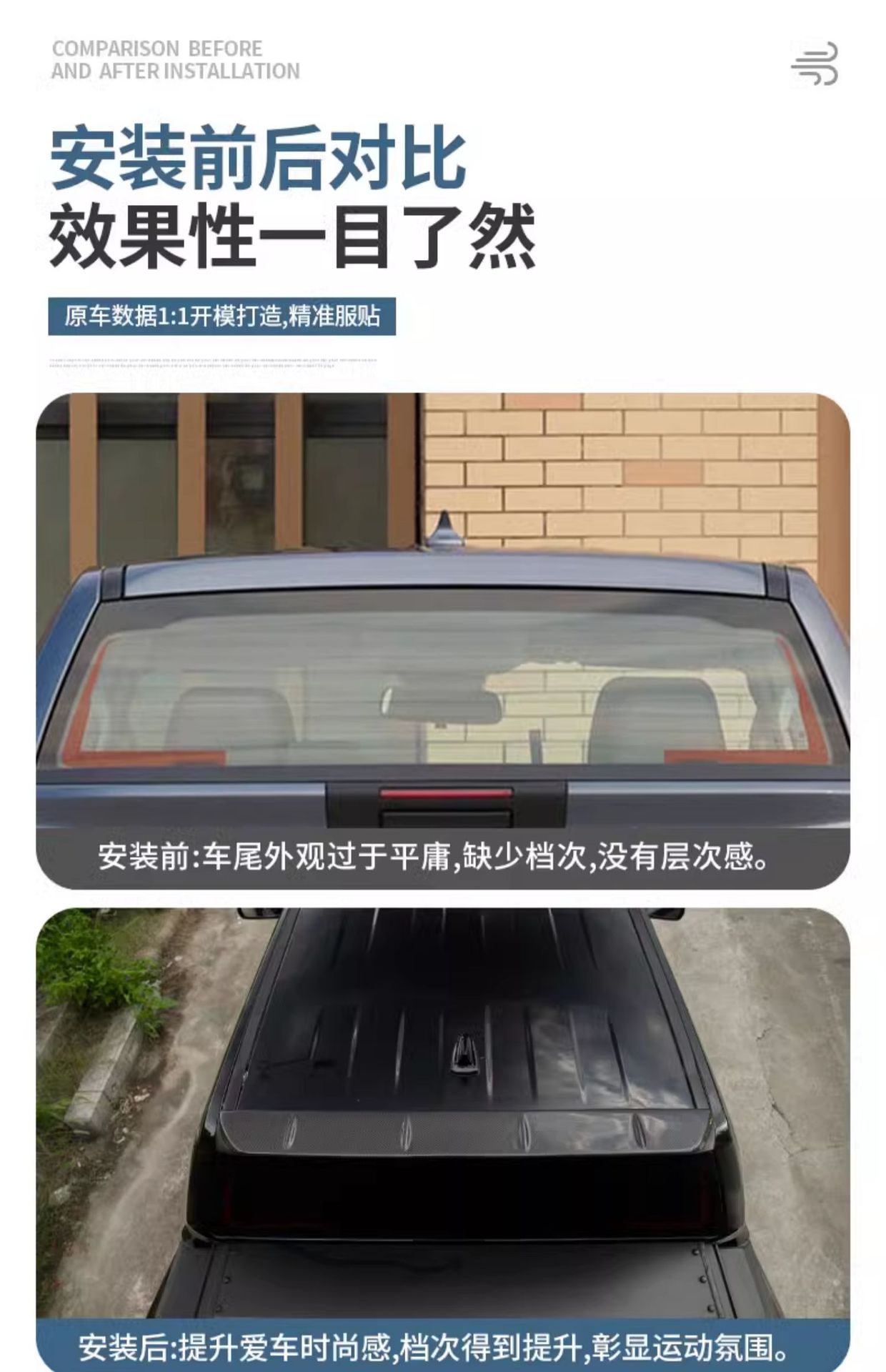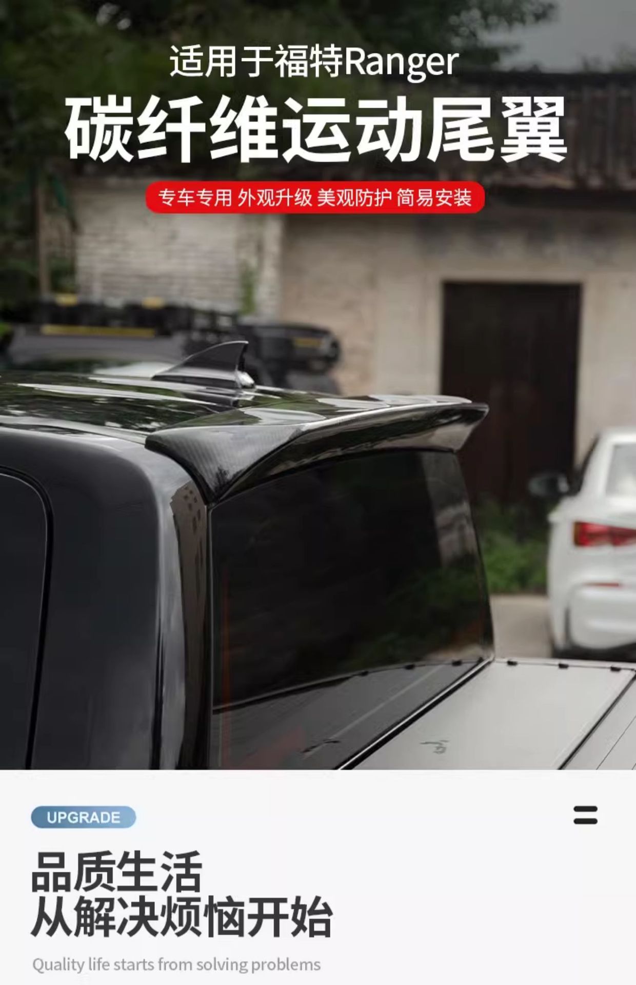 Tags: carbon fiber wing, exterior modifications, Ford Ranger spoiler, Pickup Accessories, rear roof wing, tailgate spoiler, truck aerodynamic parts