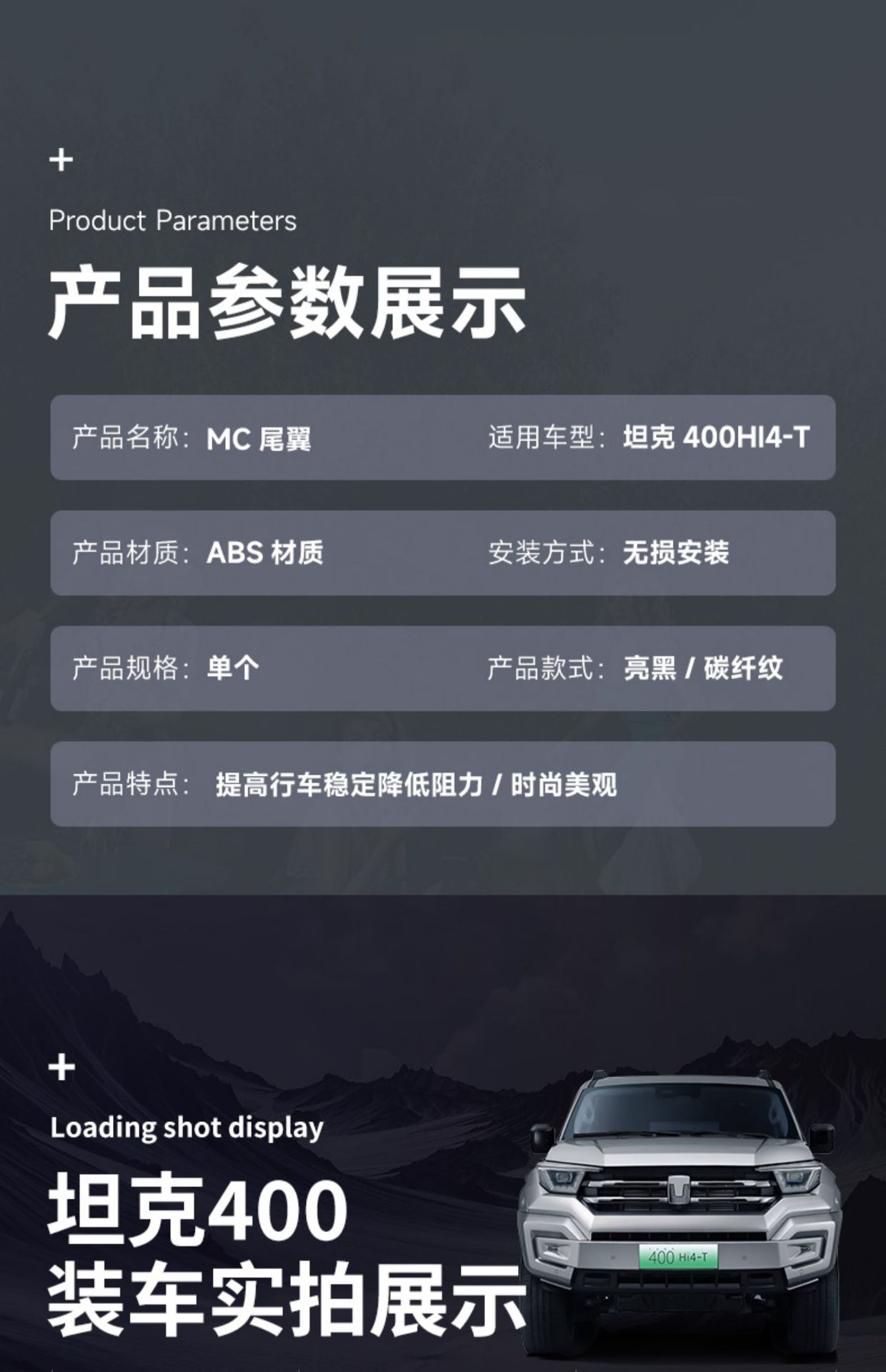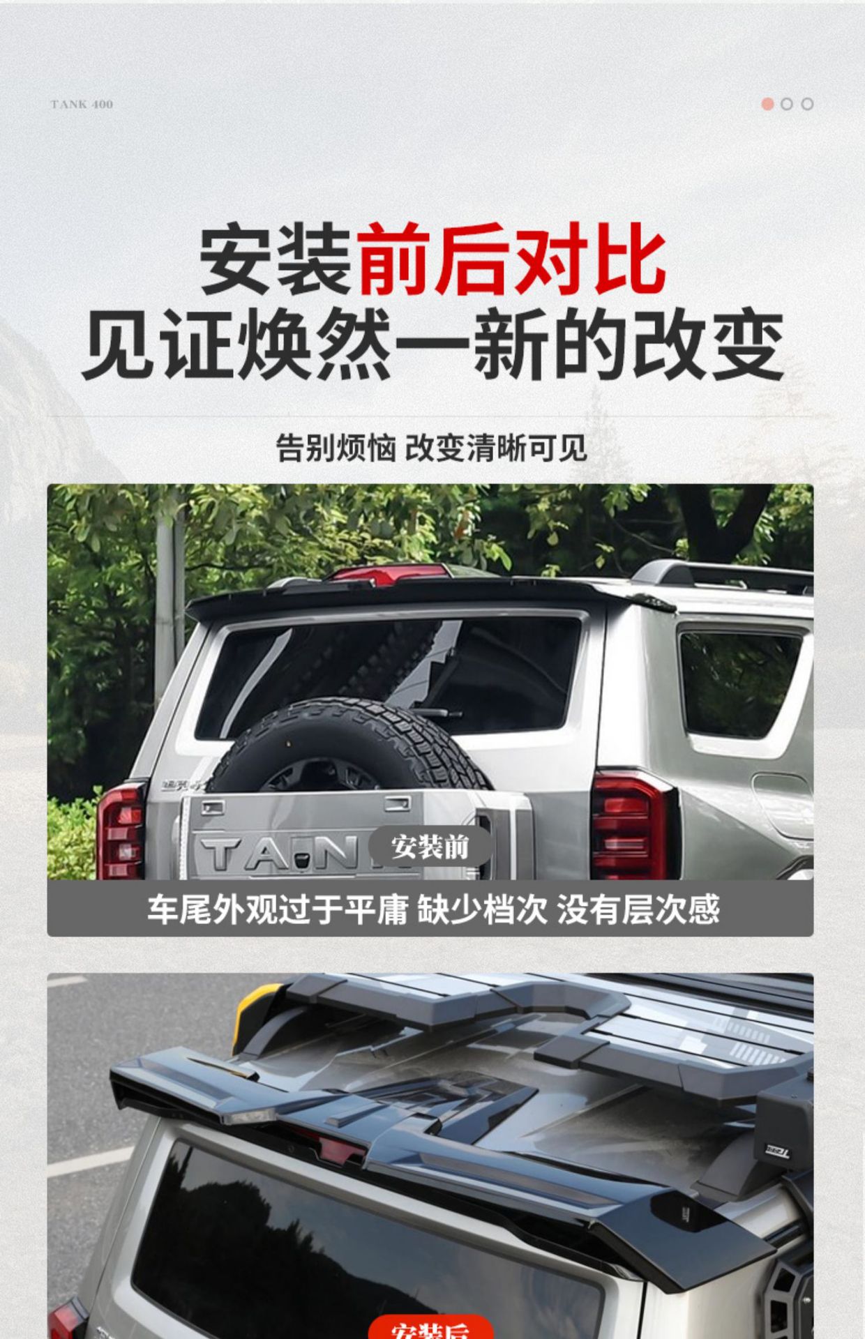Rear Roof Spoiler Wing Extension Upgrade Exterior Accessory Compatible with Tank 400 Hi4-T