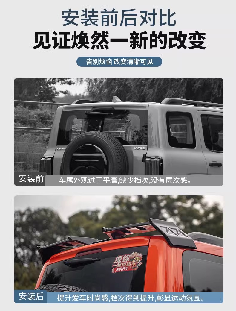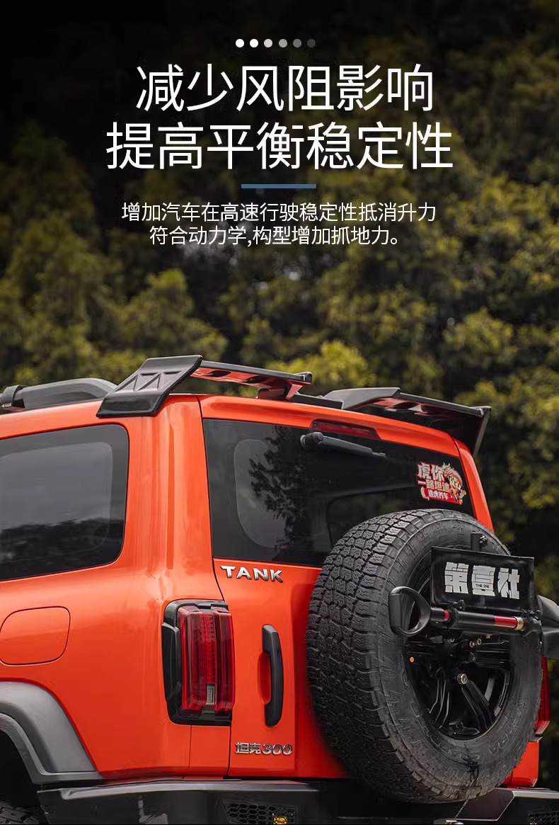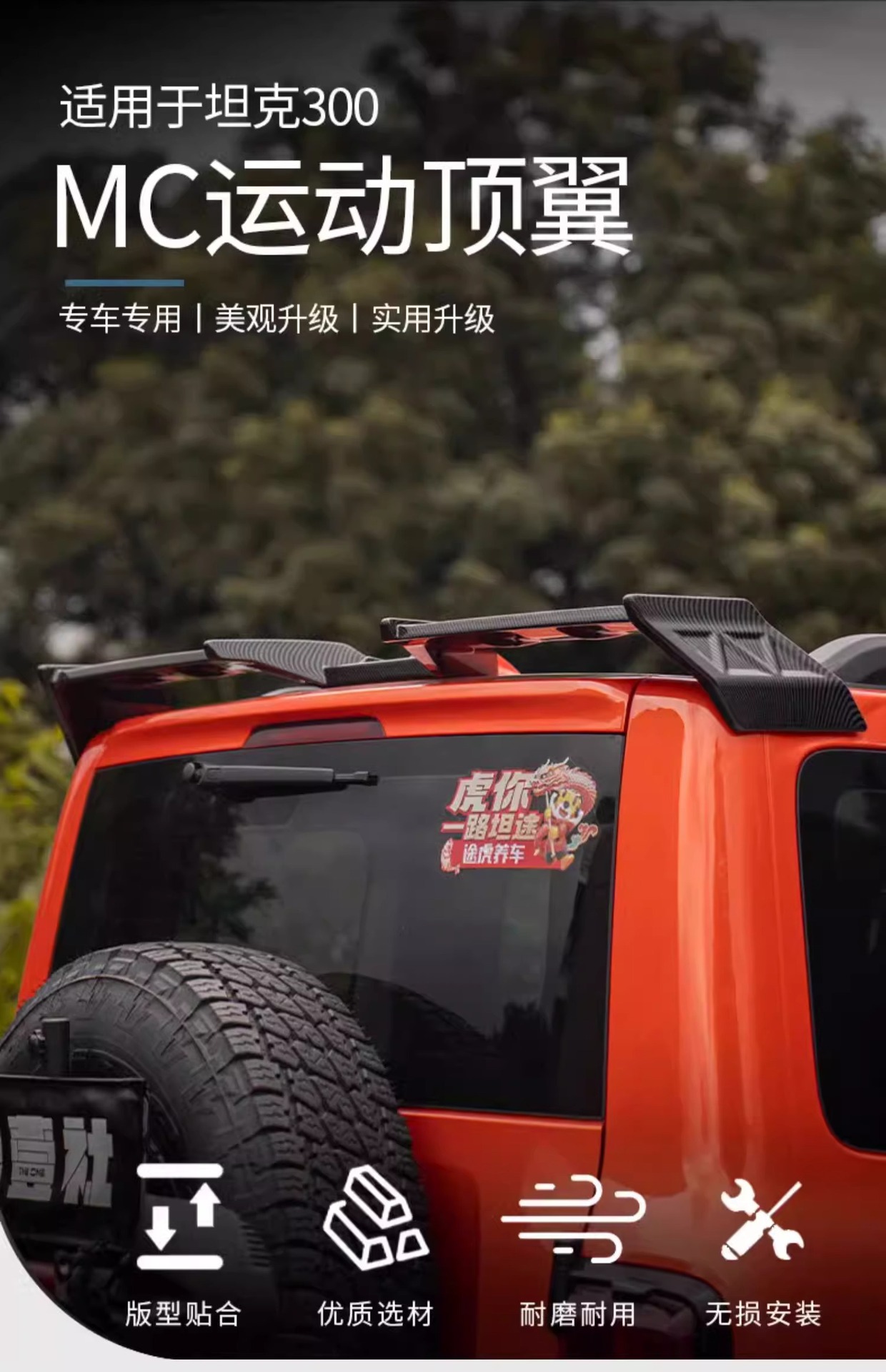 Enhance your Tank 300 with this MC sport style rear roof spoiler. Drill-free installation and aerodynamic design improve stability and exterior styling. Shop now.