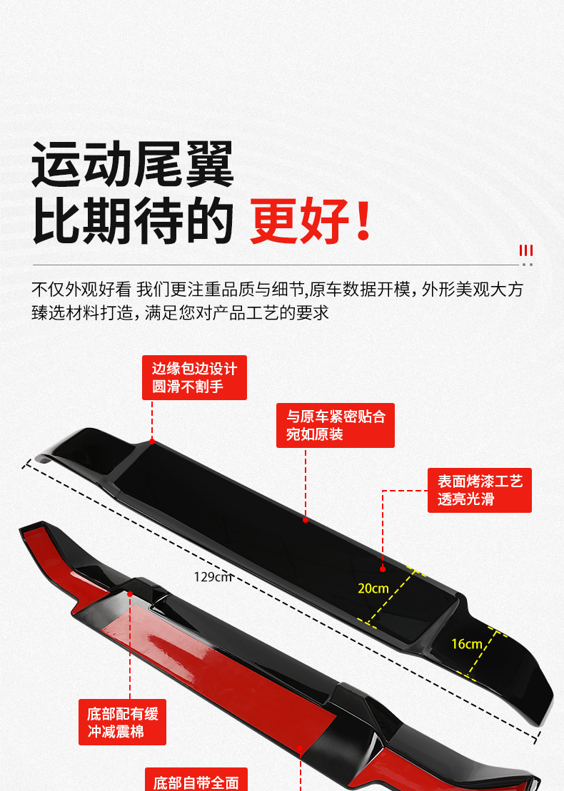 - Aerodynamic Design: Features a sleek profile that enhances the vehicle’s rear airflow and stability at higher speeds.