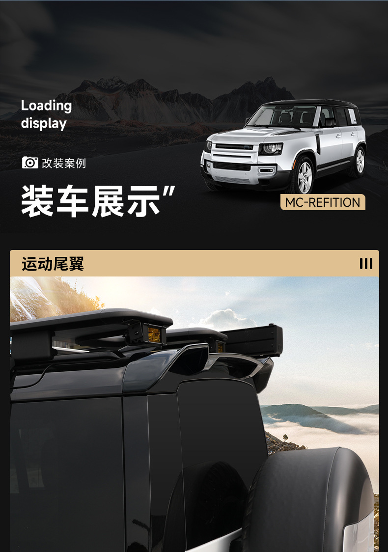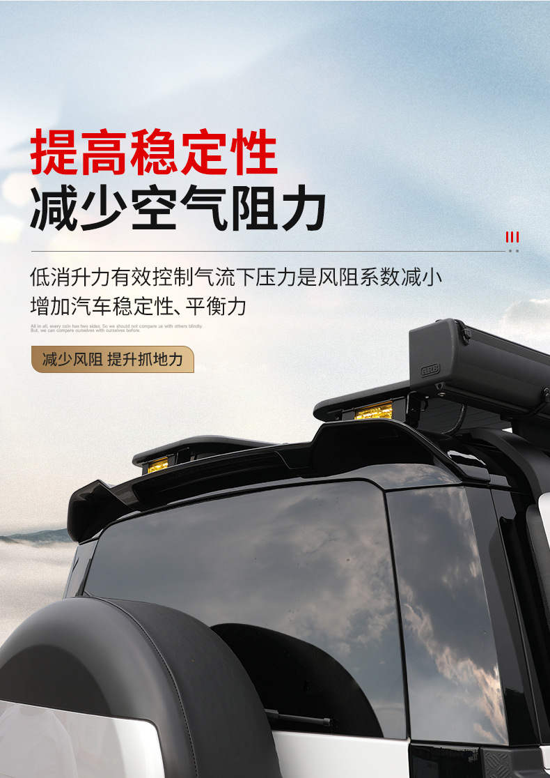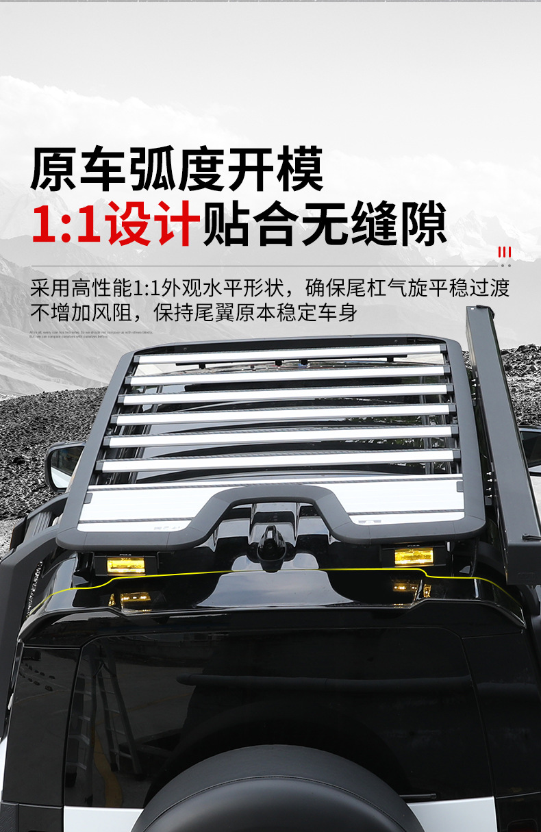 Upgrade your vehicle with this premium rear roof spoiler wing. Designed for New Defender models, it enhances aerodynamics and adds a rugged off-road aesthetic.