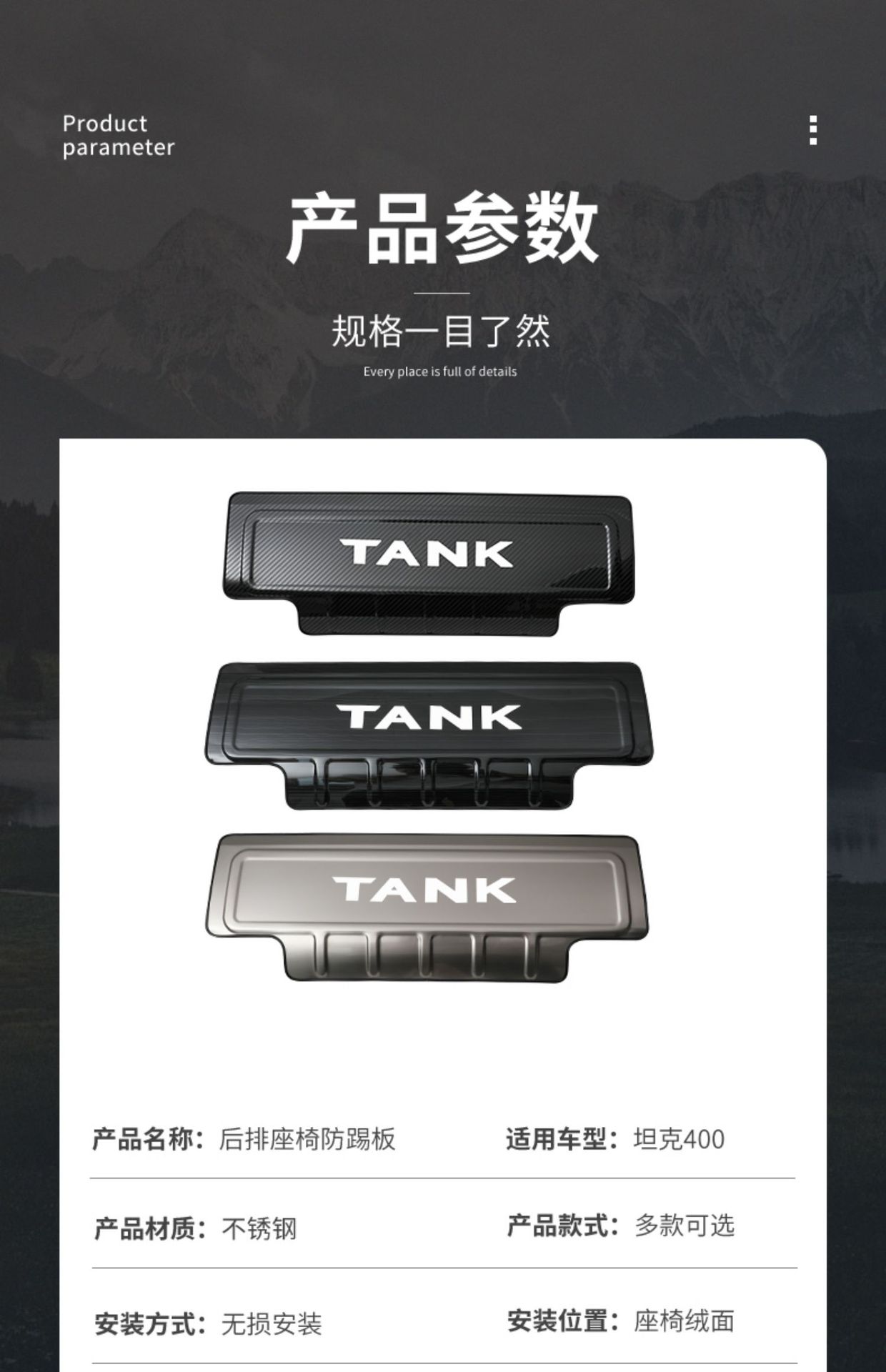 Be the first to review “Rear Seat Anti-Kick Pads Stainless Steel Protector Guards for Tank 400 Hi4-T Interior Trim Accessories” Cancel reply