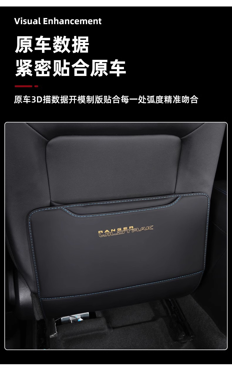 Protect your Ford Ranger 2023 interior with durable rear seat back kick pads. Prevent scratches and mud stains while maintaining a clean, professional truck cabin.