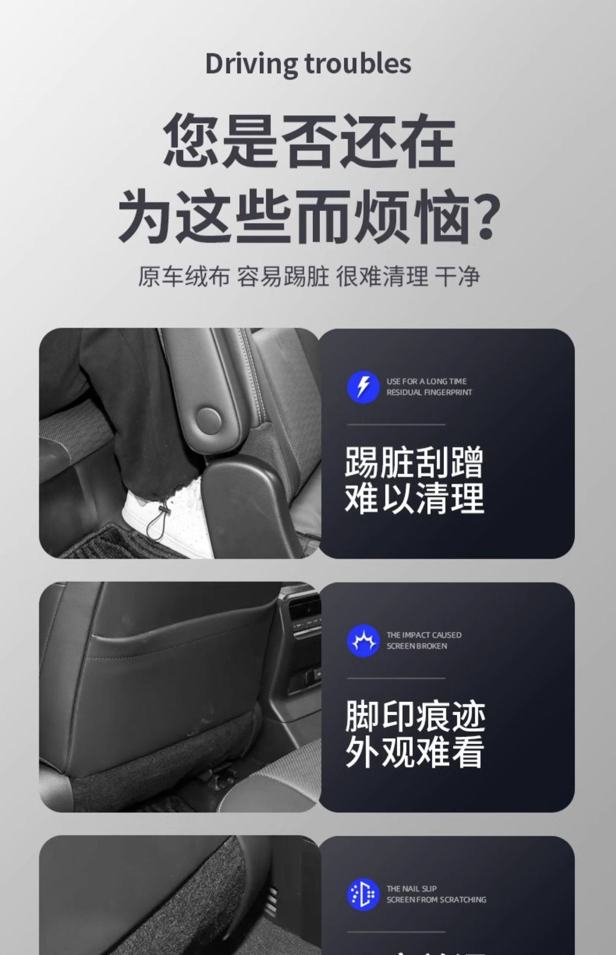 - Custom-fit protection designed specifically for the rear seat backrest areas to prevent scuffs and dirt buildup.