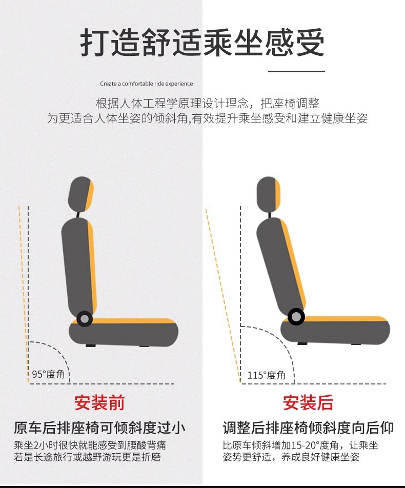 - Improved Comfort: Provides a balanced recline for rear passengers to enhance seating posture and comfort during long trips.