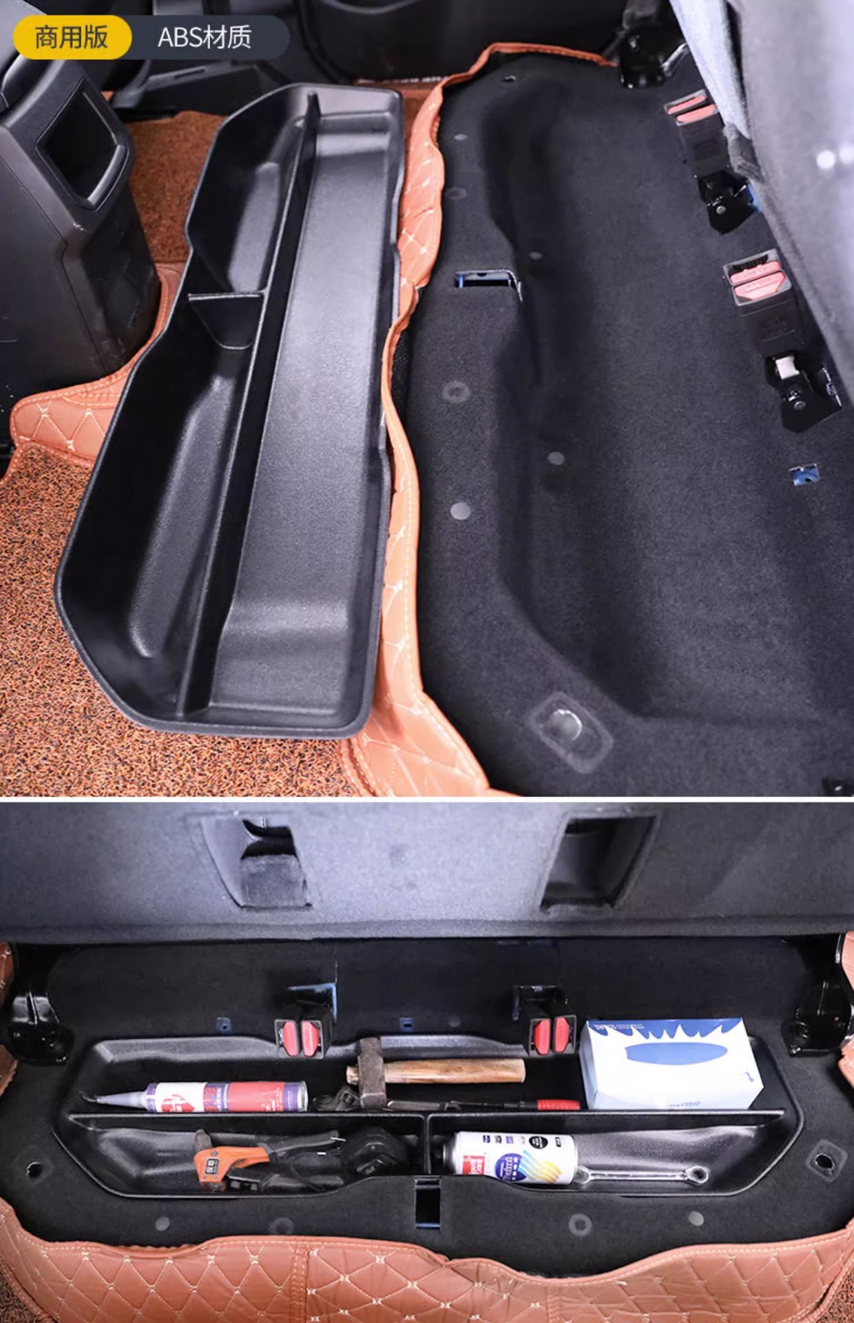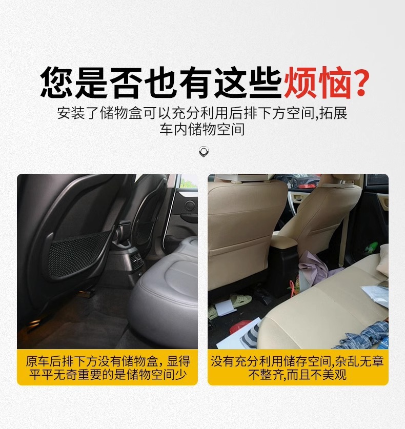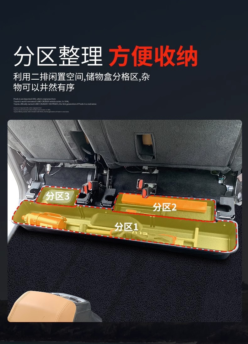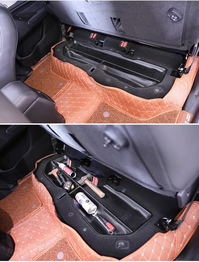 - Efficient Space Utilization: Maximizes cabin organization by providing dedicated storage space for tools, emergency kits, and personal items under the rear seats.