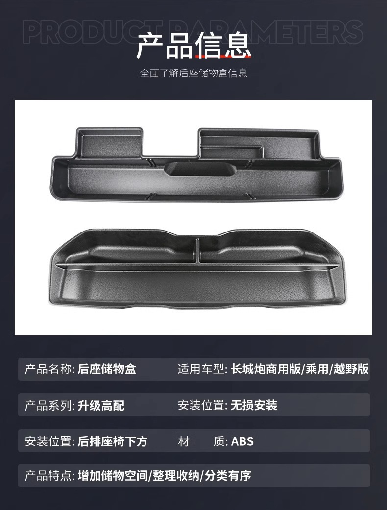 Rear Seat Storage Box Organizer Under-Seat Tray for GWM POER Cannon Pickup Interior Accessories