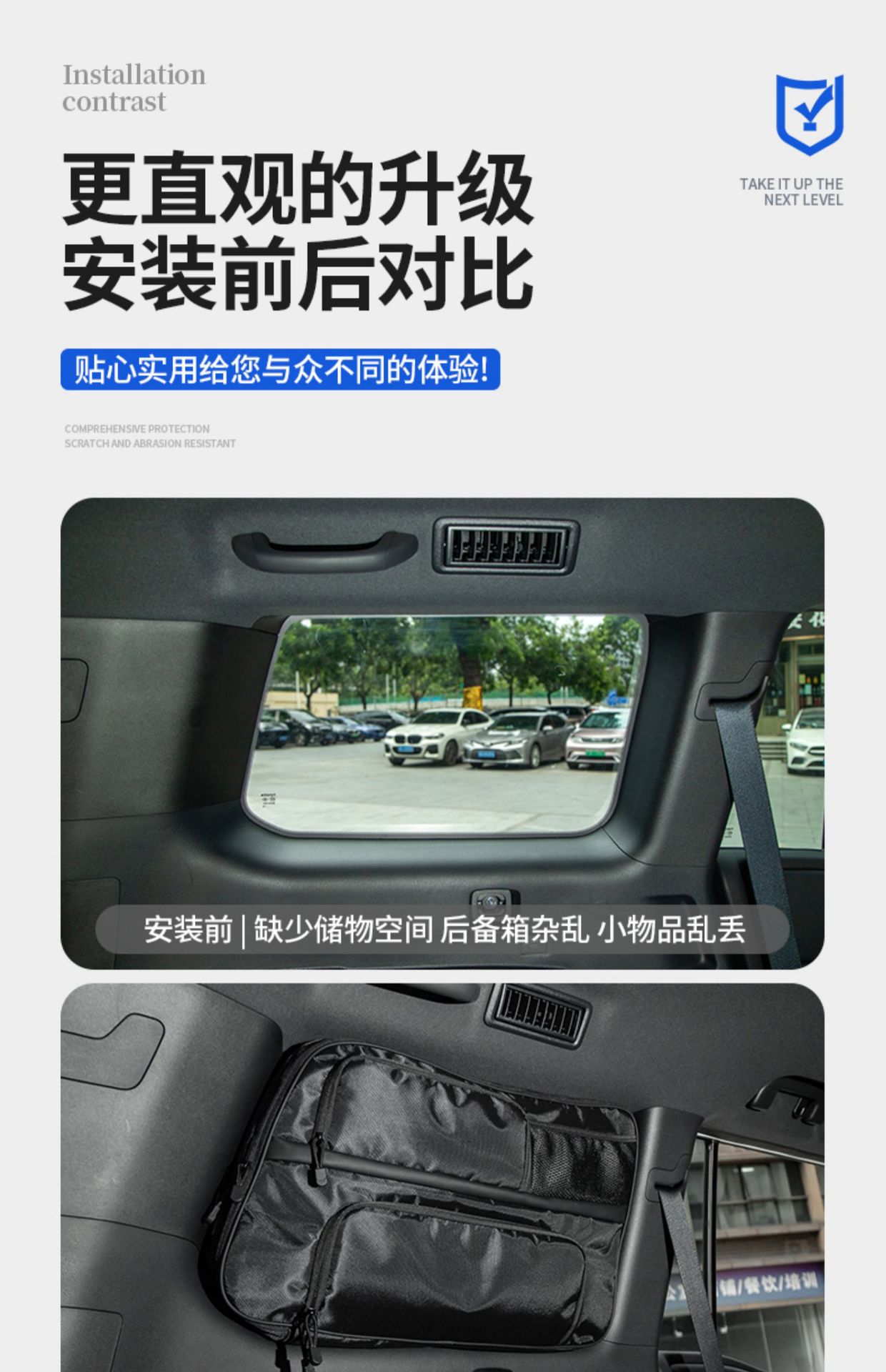 - Easy Installation: Features a secure hanging mounting system that integrates with existing vehicle points without requiring permanent modifications.