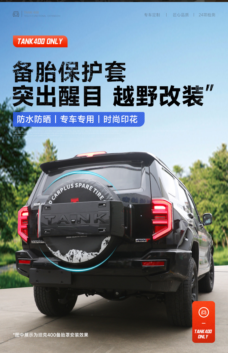 Tags: off-road tire protector, Spare Tire Cover, spare wheel guard, SUV exterior parts, tank 400 hi4-t accessories, waterproof tire shield, wheel storage bag