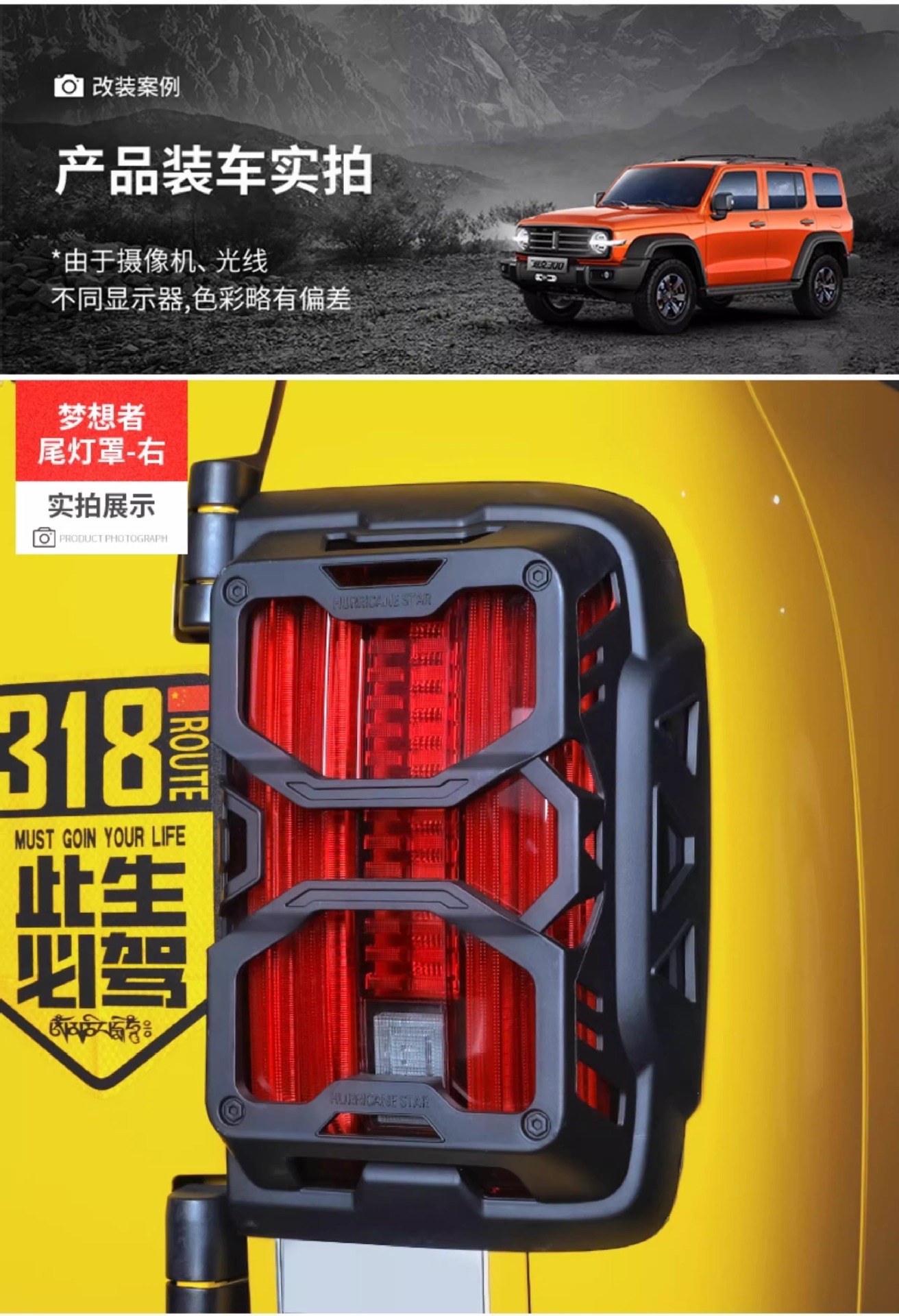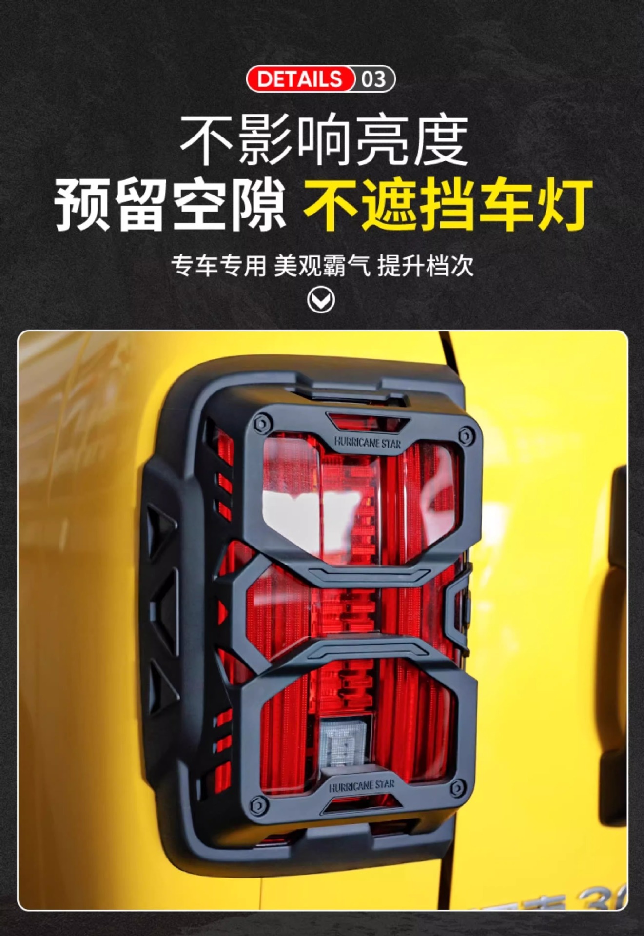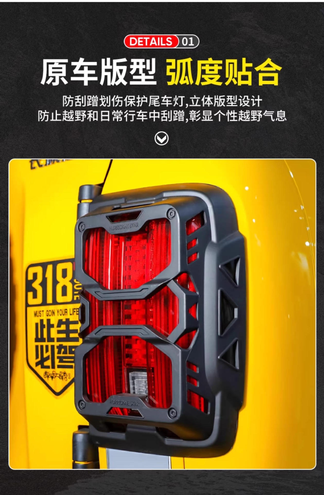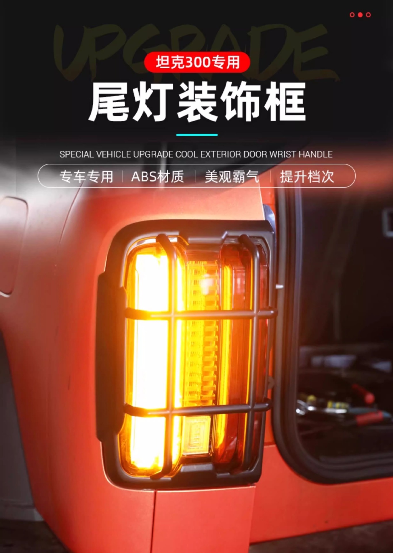 - Specifically designed as a decorative tail light surround frame for the Tank 300 off-road vehicle profile.