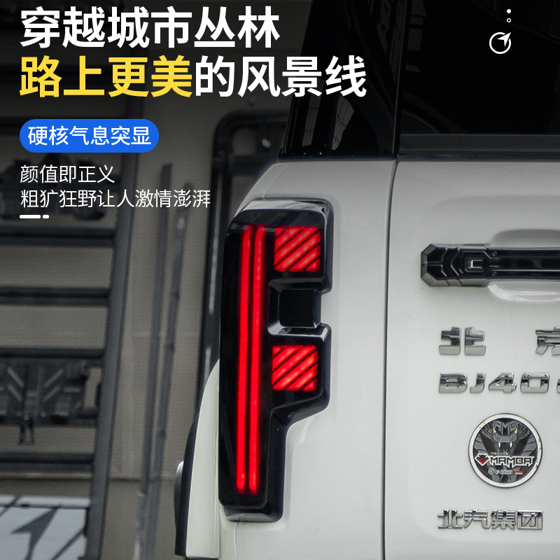 Tags: BJ40e accessories, black tail light shield, exterior styling trim, off-road light protection, Rear Lamp Protector, smoked light covers, tail light guards