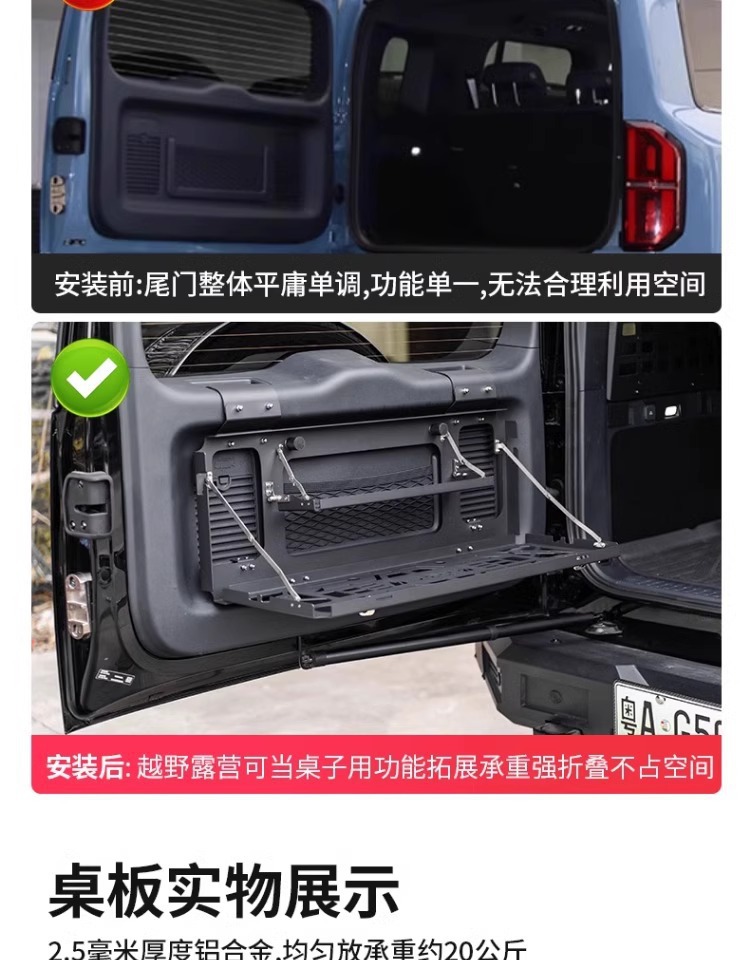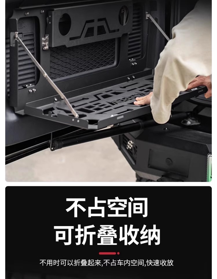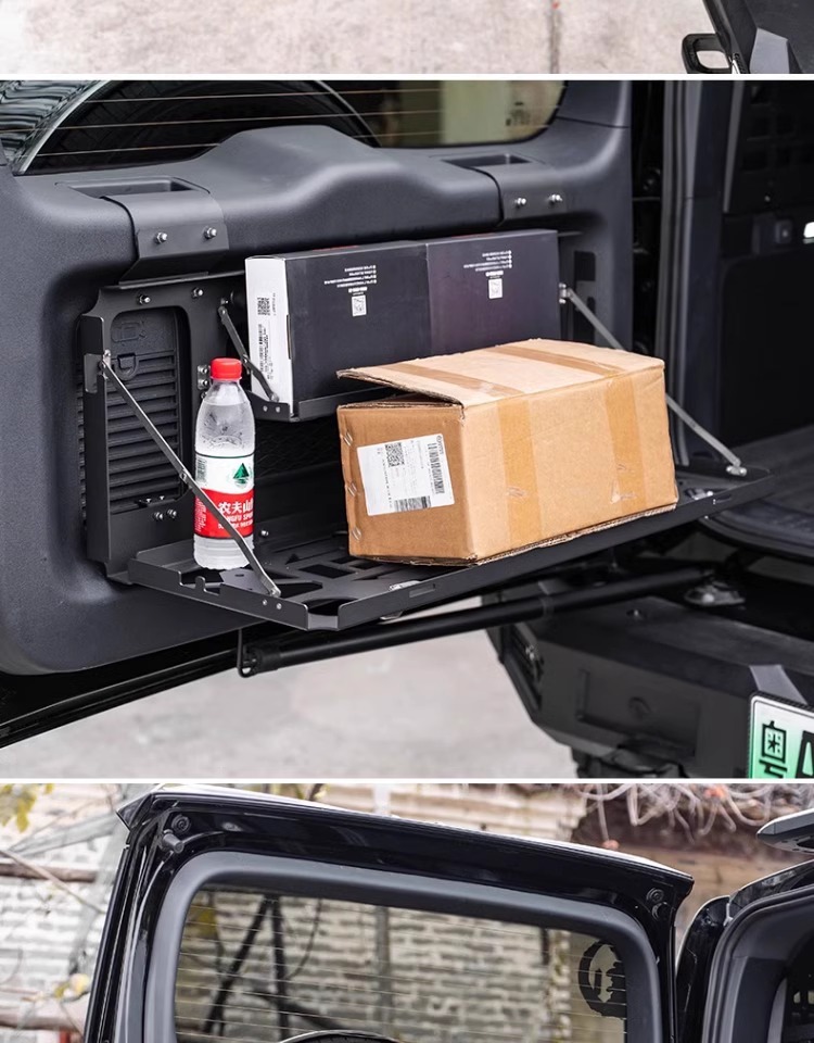 Tags: aluminum camping table, folding trunk table, off-road gear shelf, rear cargo organizer, suv tailgate table, tailgate storage rack