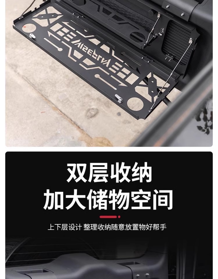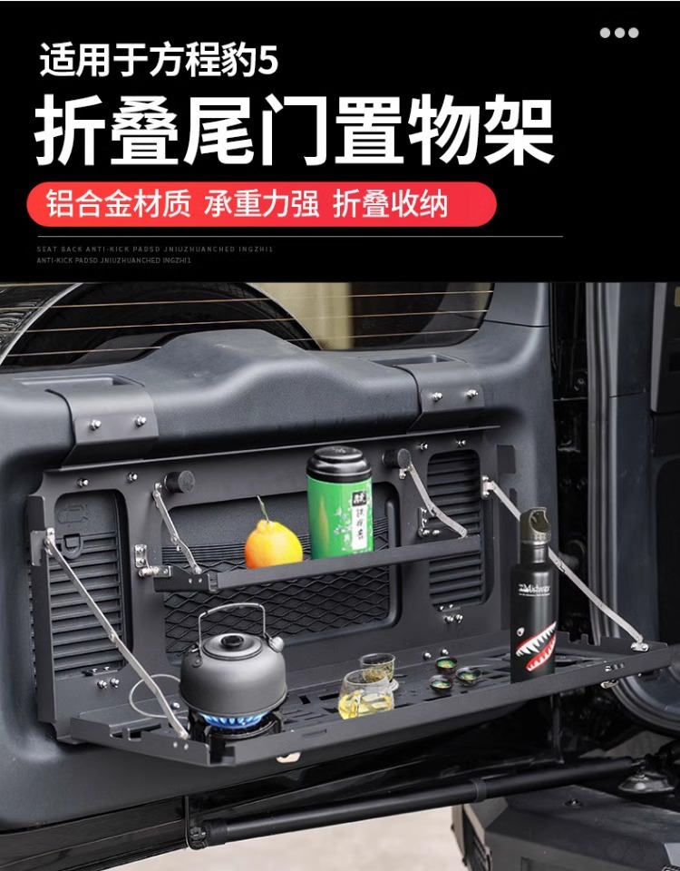 Upgrade your FangChengBao 5 with this durable aluminum alloy double-layer tailgate shelf. Perfect for camping and storage, featuring a space-saving folding design.