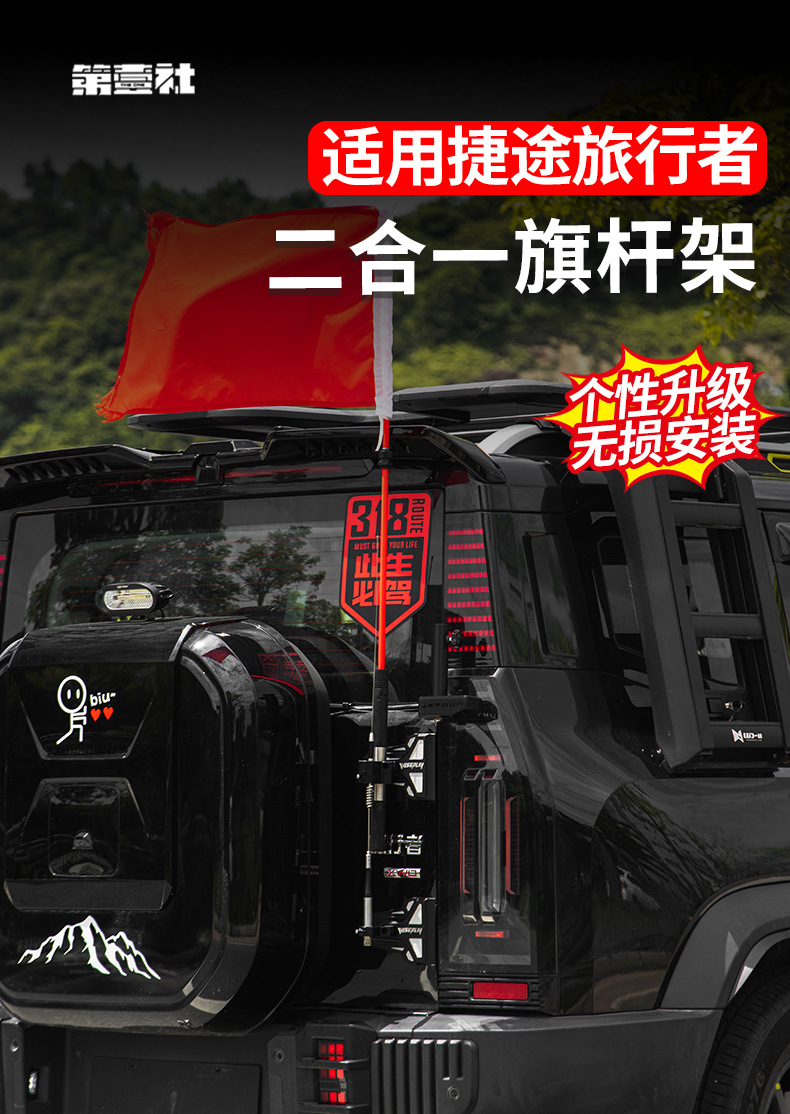 Upgrade your Jetour T2 Traveler with this dual-functional aluminum alloy flagpole and antenna bracket. Durable, easy to install, and designed for off-road use.
