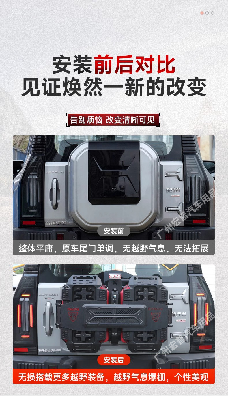 Tags: External Expansion Box, jetour traveler accessories, off-road gear rack, rear cargo organizer, Rear Door Utility Box, Spare Tire Carrier Replacement, tailgate storage box