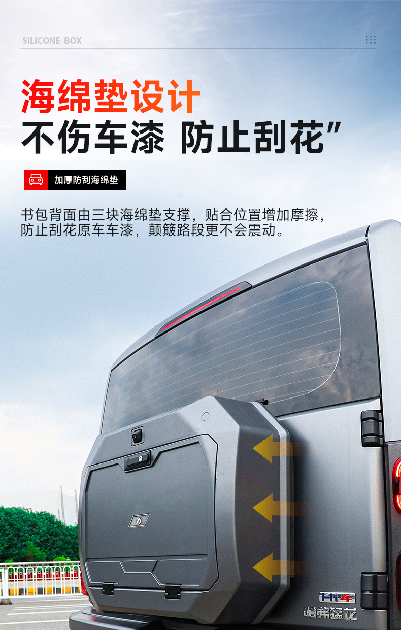 - Maximized Storage Space: Utilizes the exterior tailgate and spare tire area for extra tool organization and gear storage.