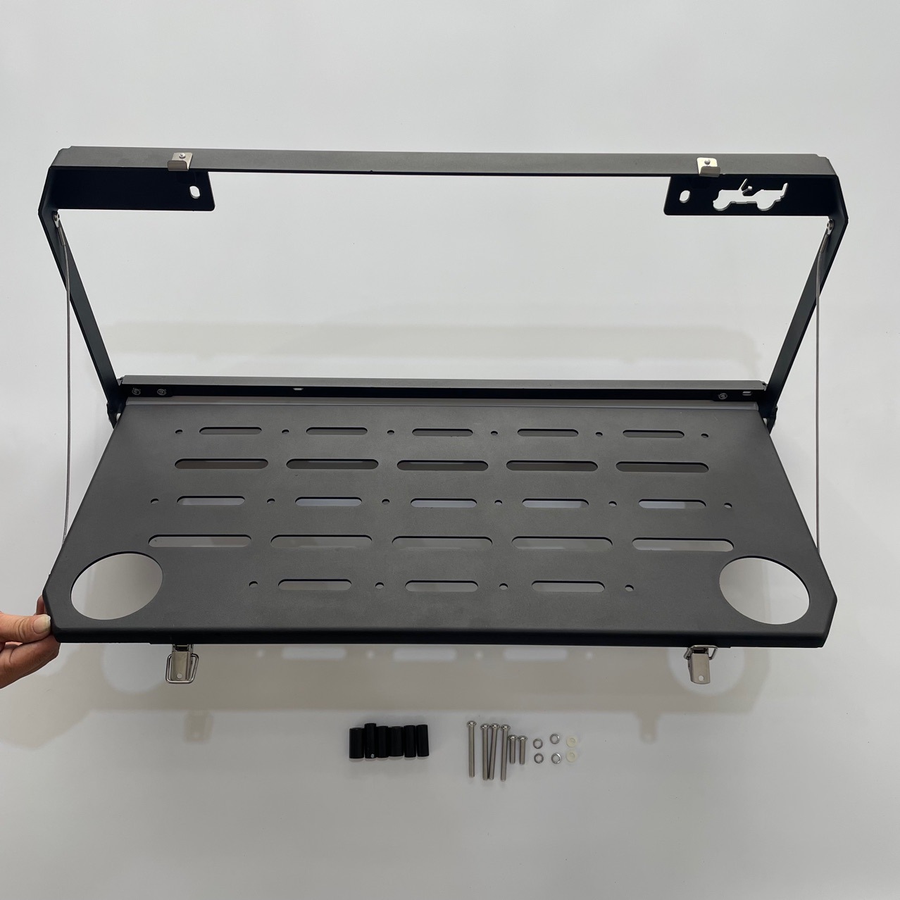 Maximize your Jeep Wrangler JL’s utility with this foldable tailgate table. Perfect for camping and trail repairs. Heavy-duty steel with MOLLE storage.