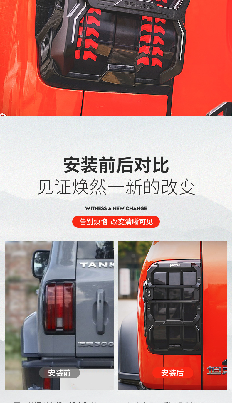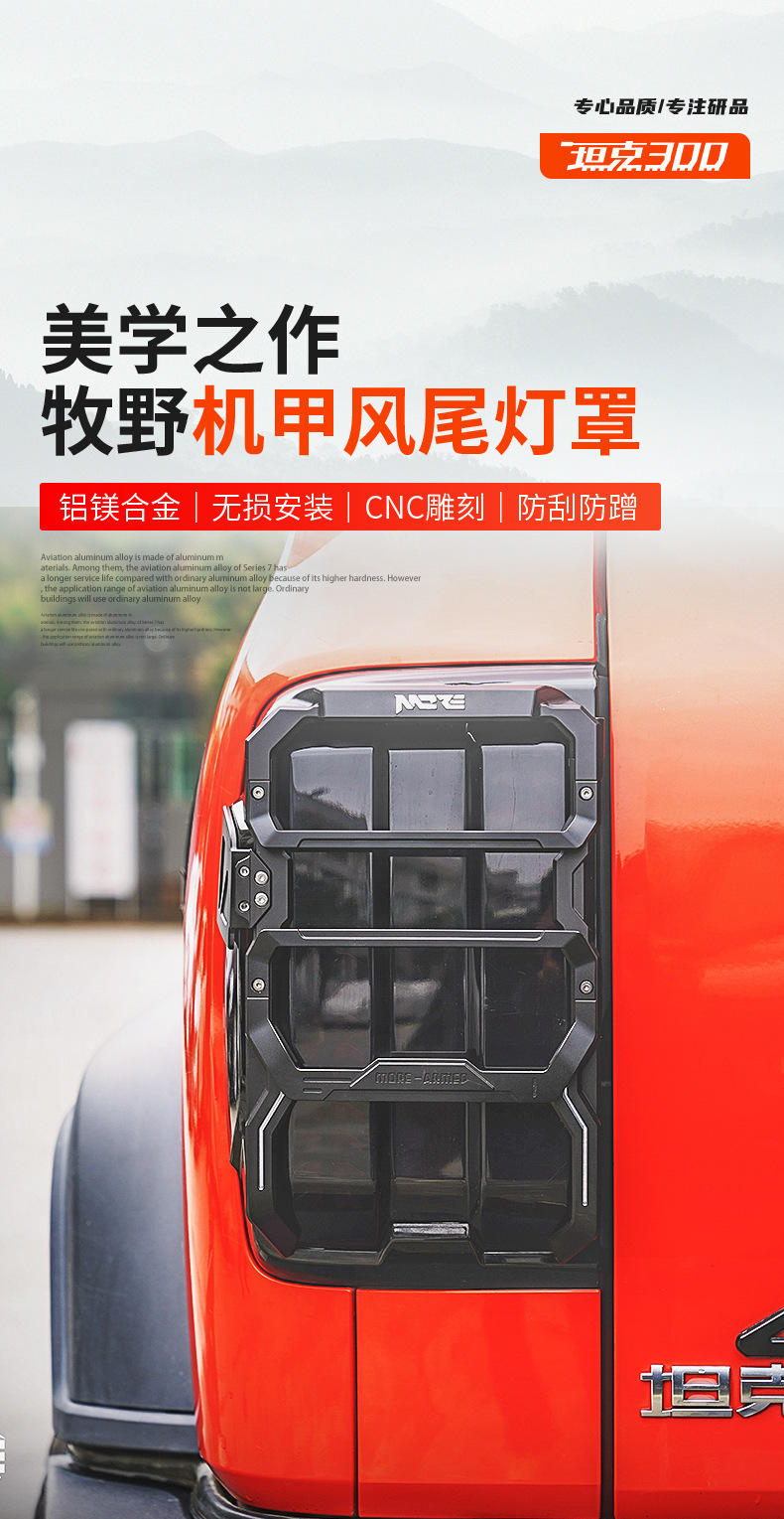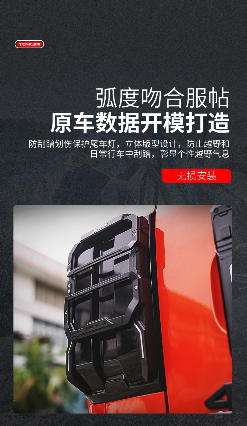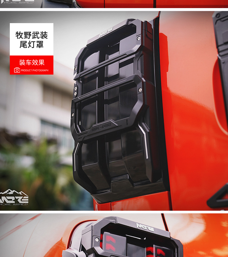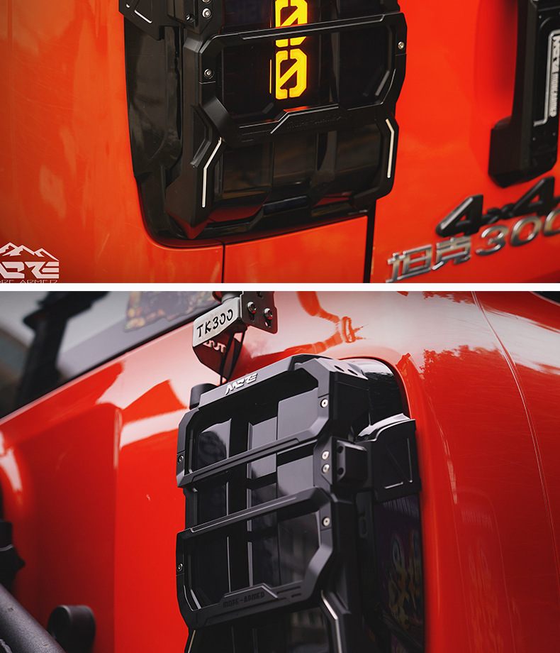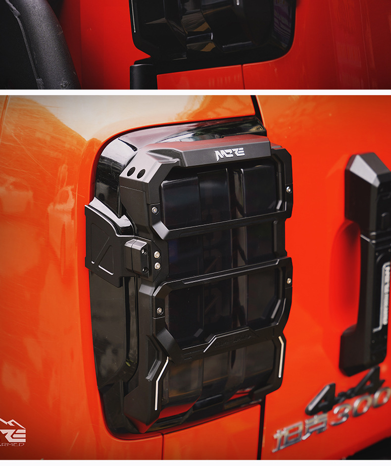 Tags: aluminum alloy tail lamp armor, mecha style car parts, off-road exterior accessories, protective light frames, rear light covers, taillight guards