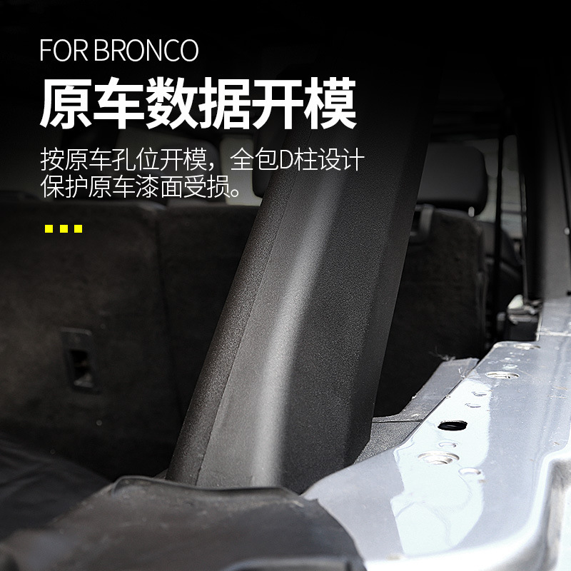 Tags: Bronco interior accessories, cargo area protection, D-pillar protector, interior molding trim, rear pillar cover, trunk trim guard