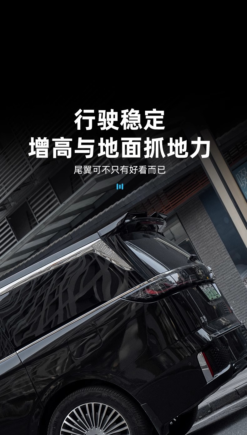 Tags: automotive exterior tuning, car modification accessories, glossy black tail wing, MPV aerodynamic parts, rear roof spoiler, trunk wing extension