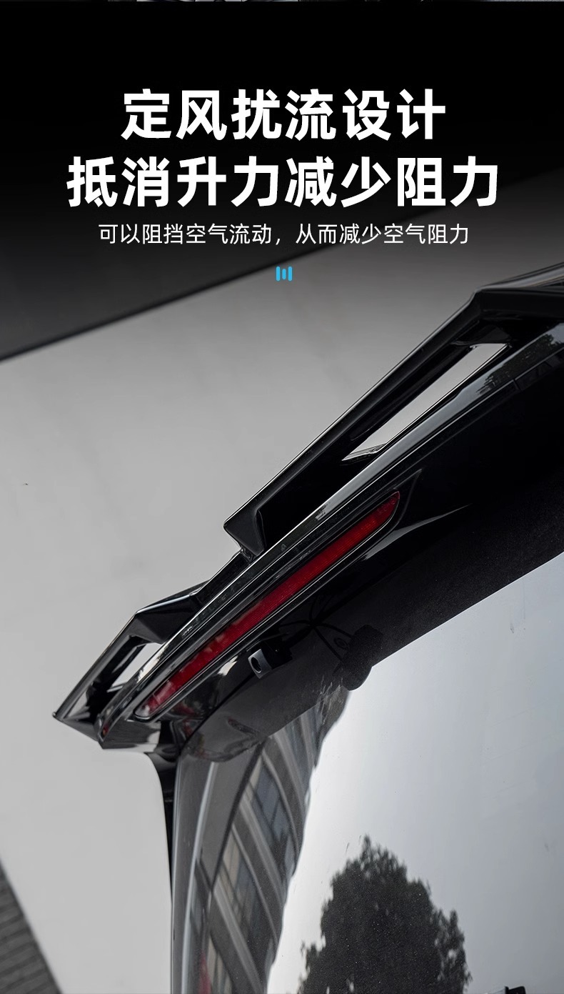 Enhance your 2025 VOYAH Dreamer with our MC style rear roof spoiler. Durable ABS construction with a glossy black finish. Easy drill-free adhesive installation.