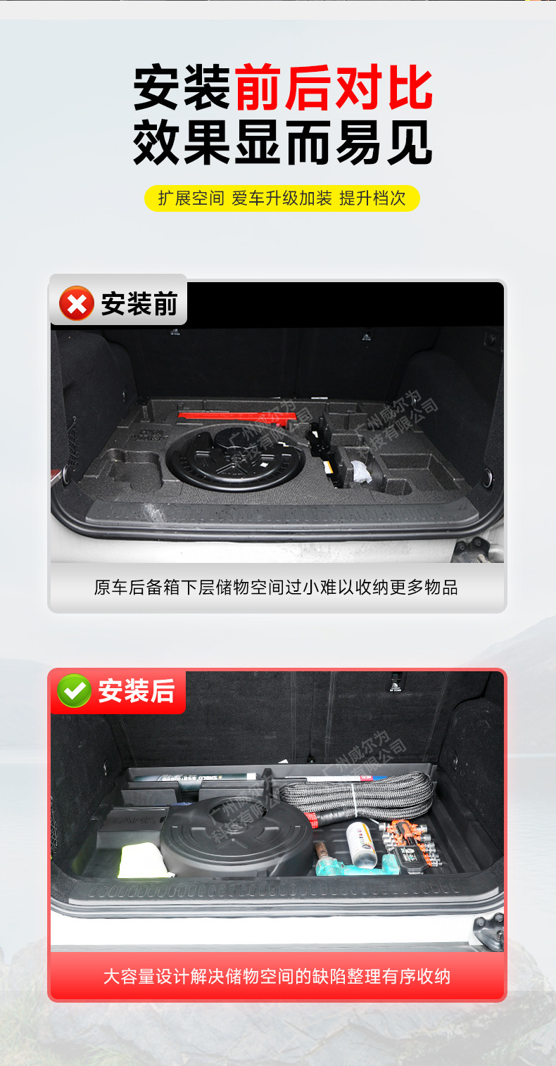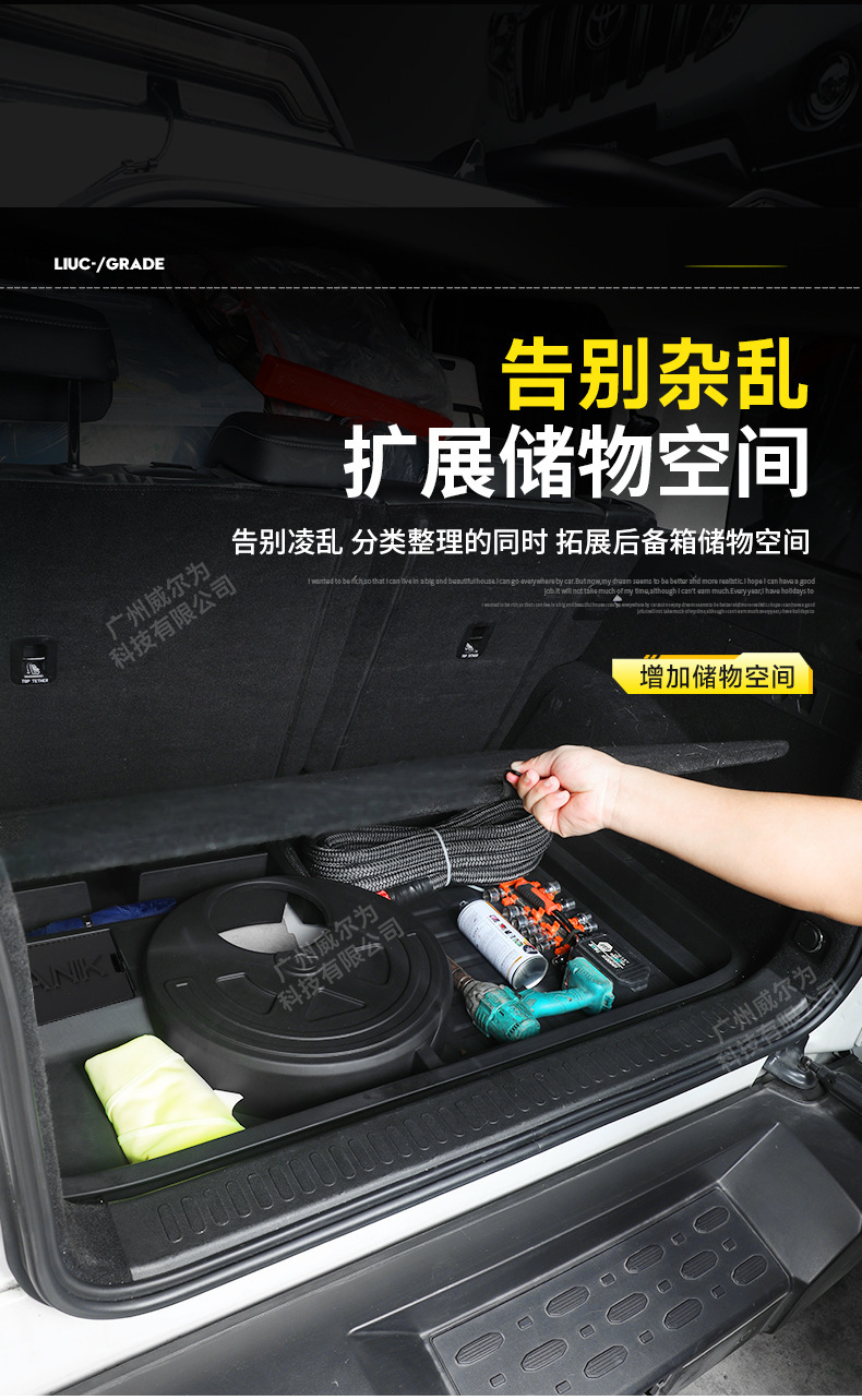 Tags: automotive tray, cargo side box, interior modification, rear storage partition, trunk organizer, vehicle gear storage