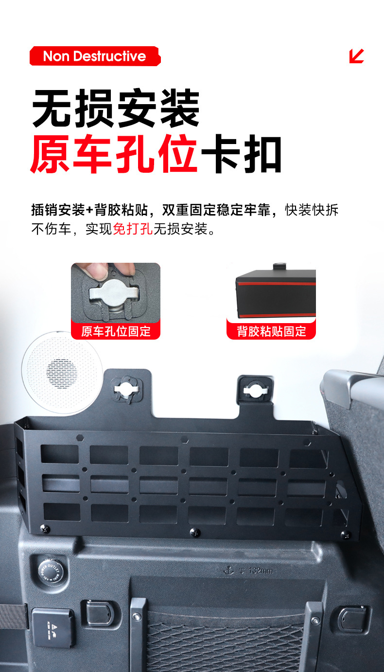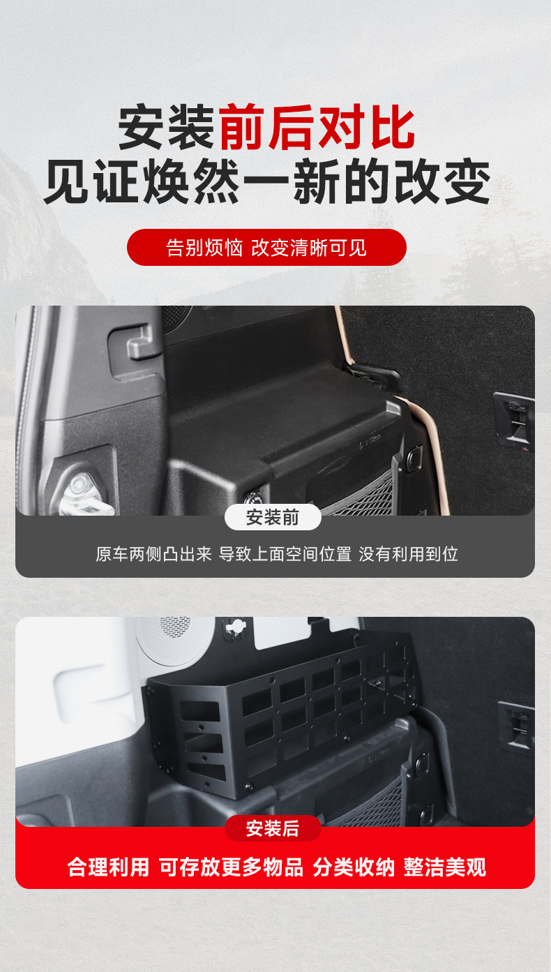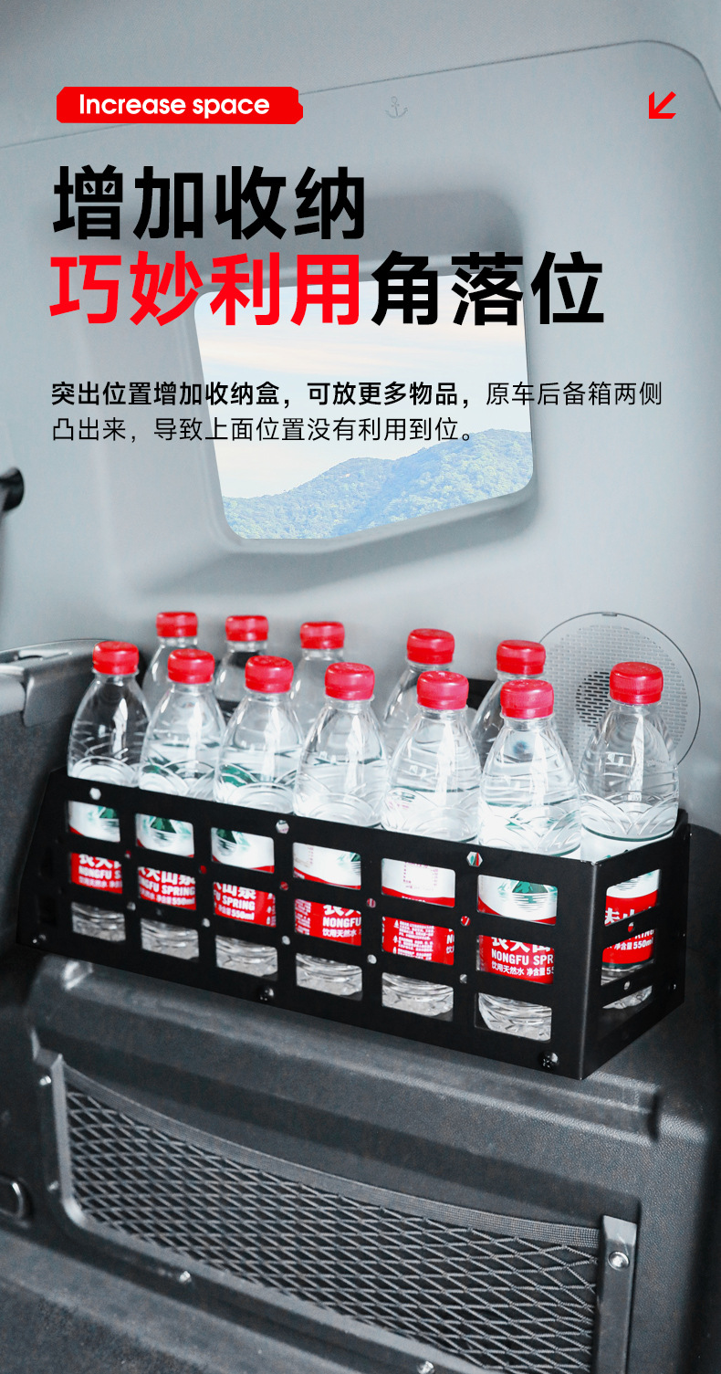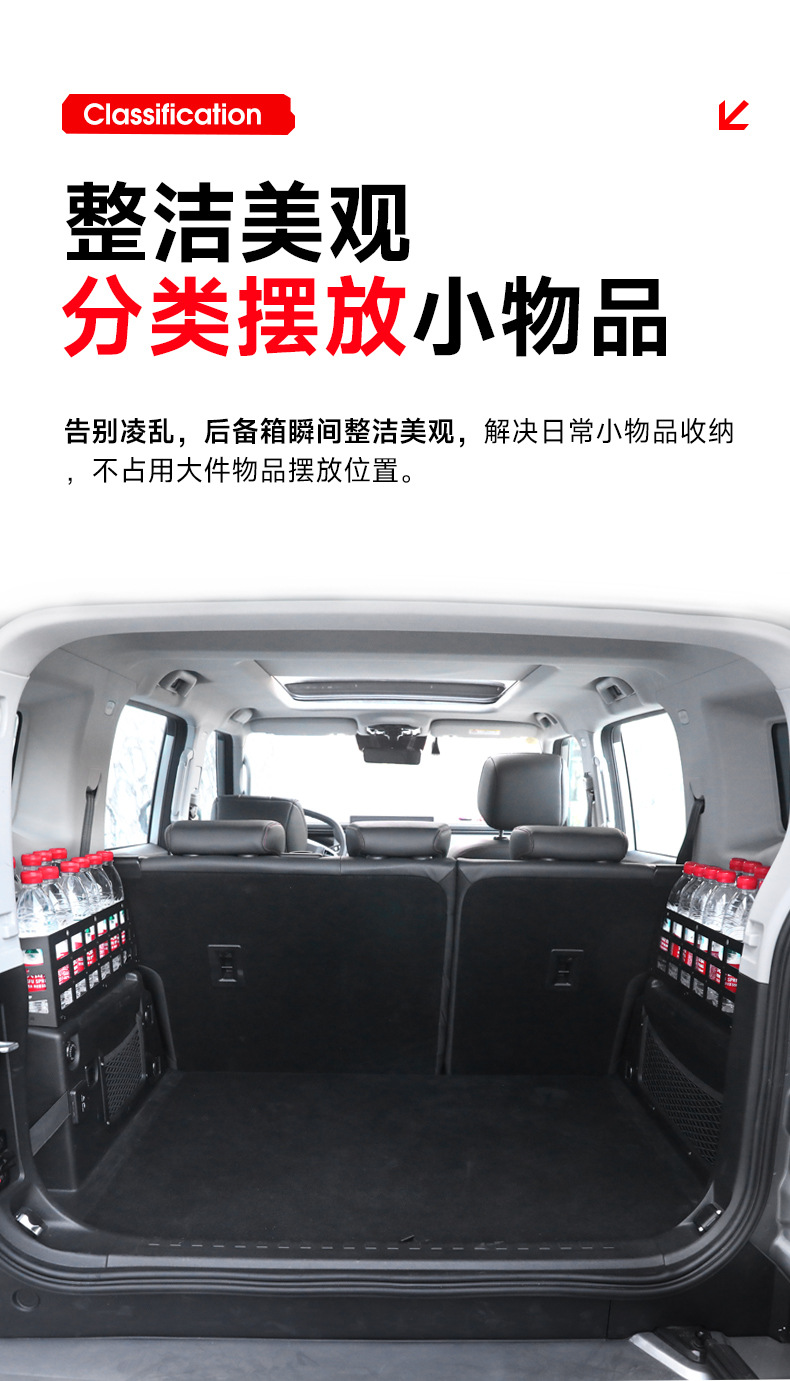 Tags: car interior storage, cargo side rack, modular rack system, off-road accessories, rear luggage shelf, storage box, trunk organizer