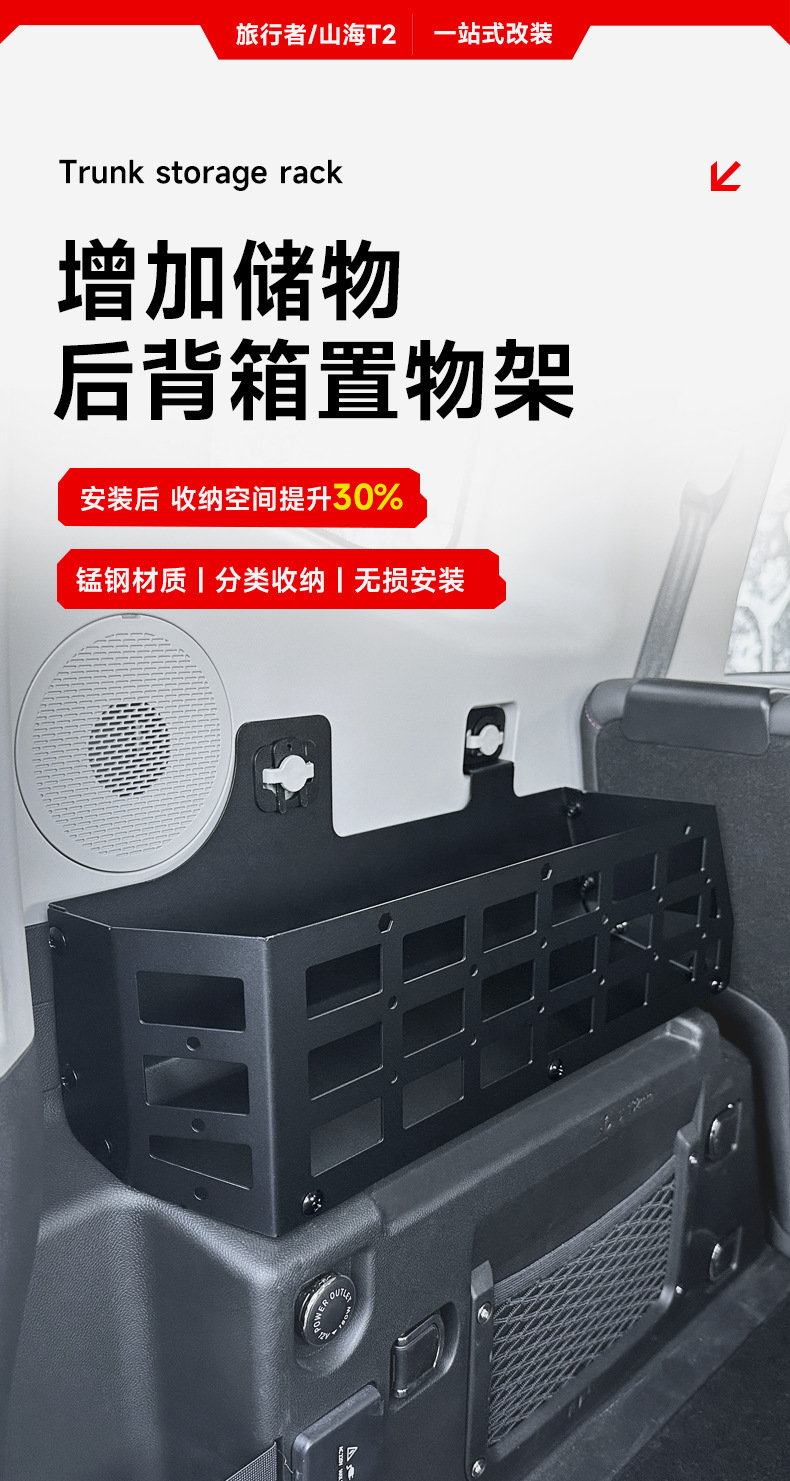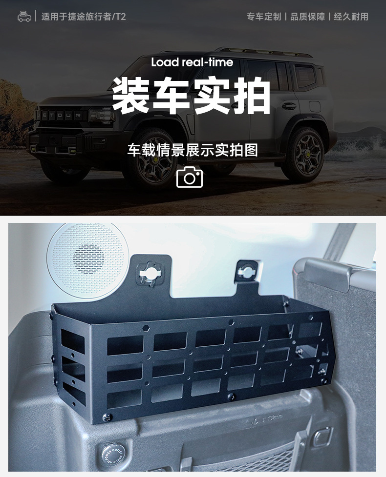 Upgrade your Jetour Traveler or Shanhai T2 with these premium rear trunk side storage racks. Durable, easy to install, and perfect for organizing off-road gear.