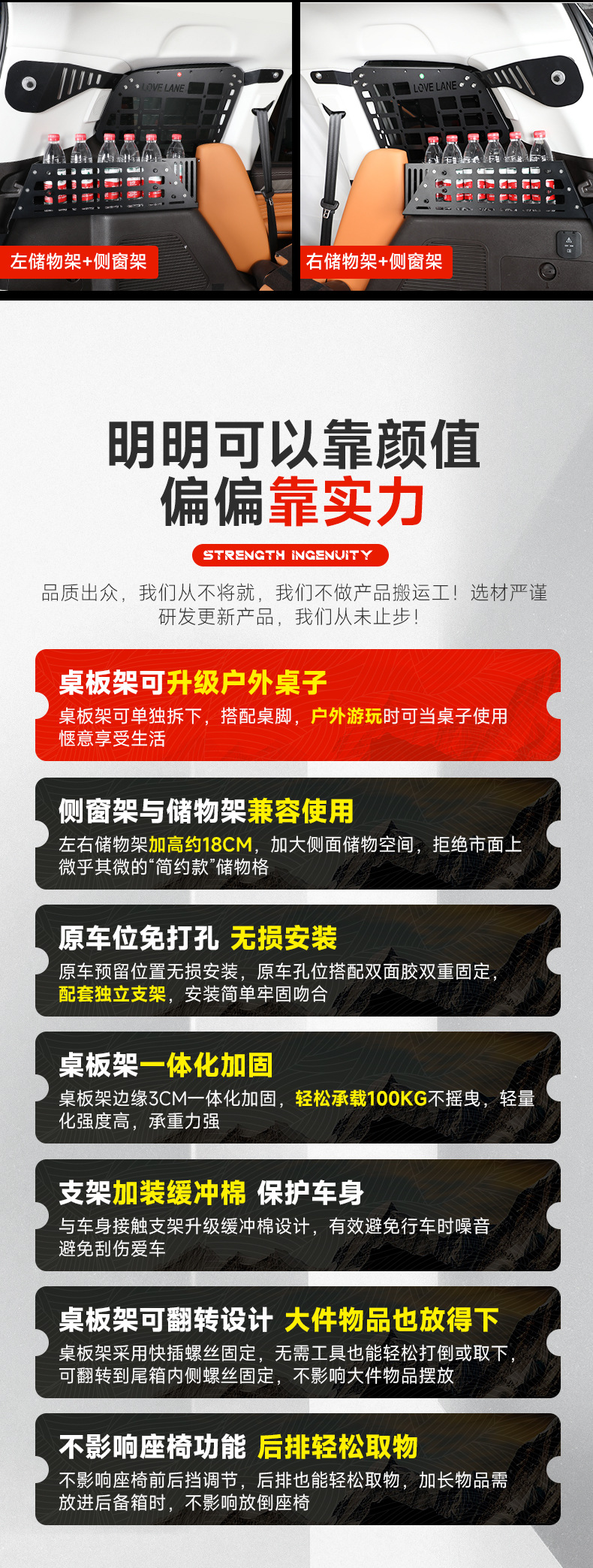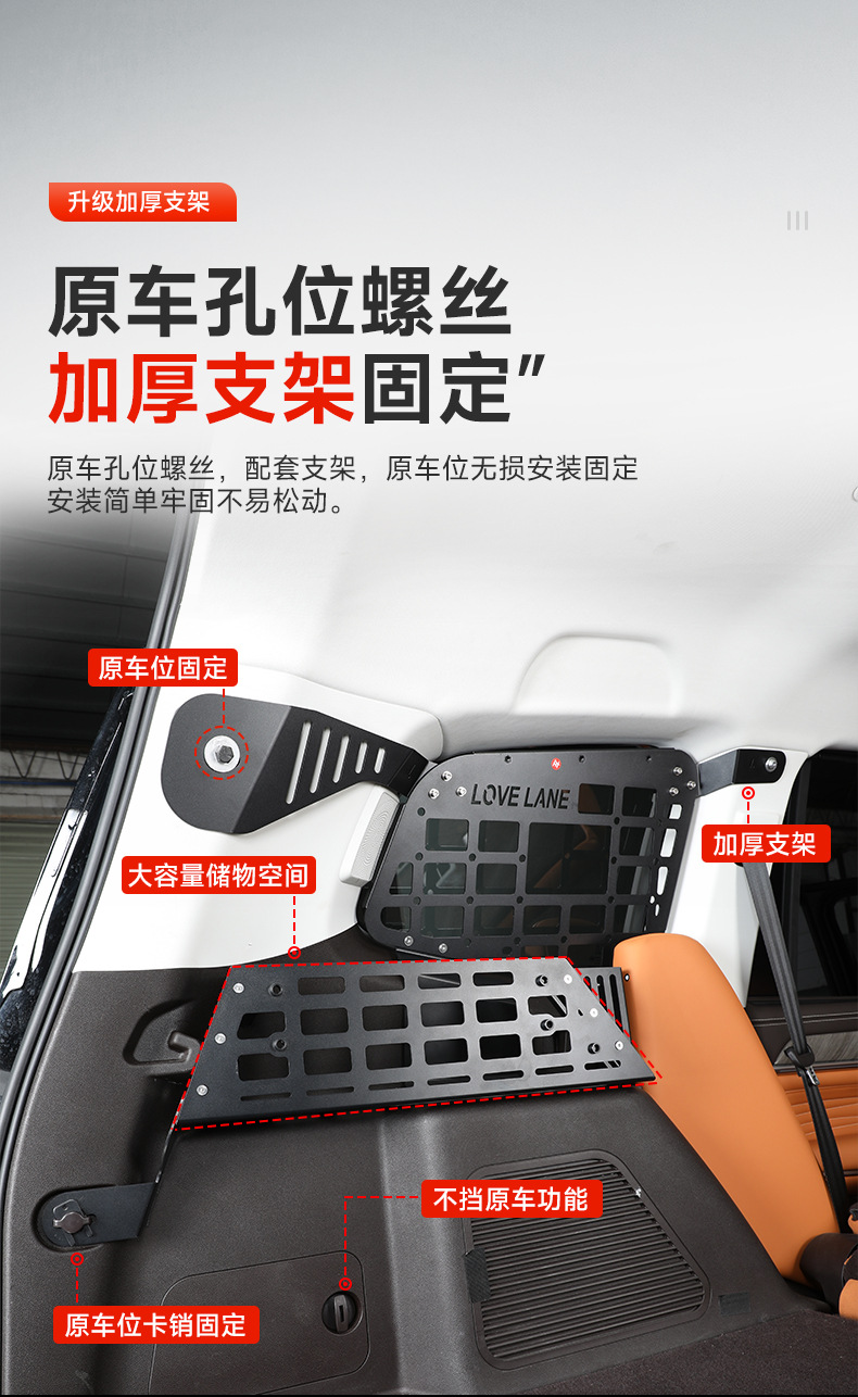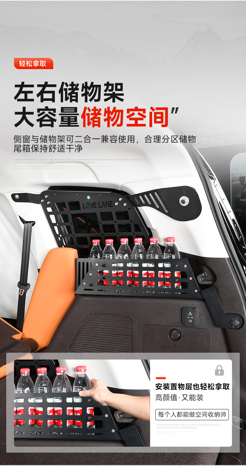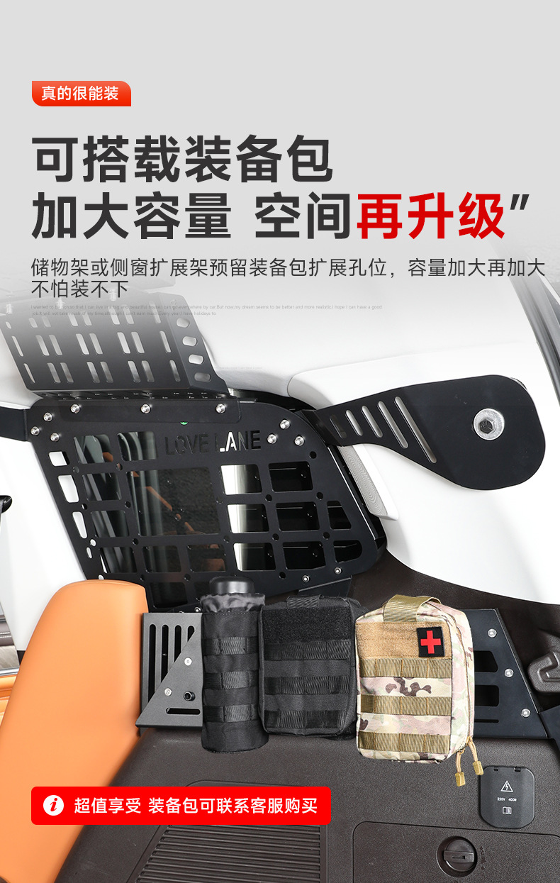 Tags: interior storage upgrade, modular storage shelf, off-road cargo management, side window expansion panel, trunk organizer rack, utility luggage rack