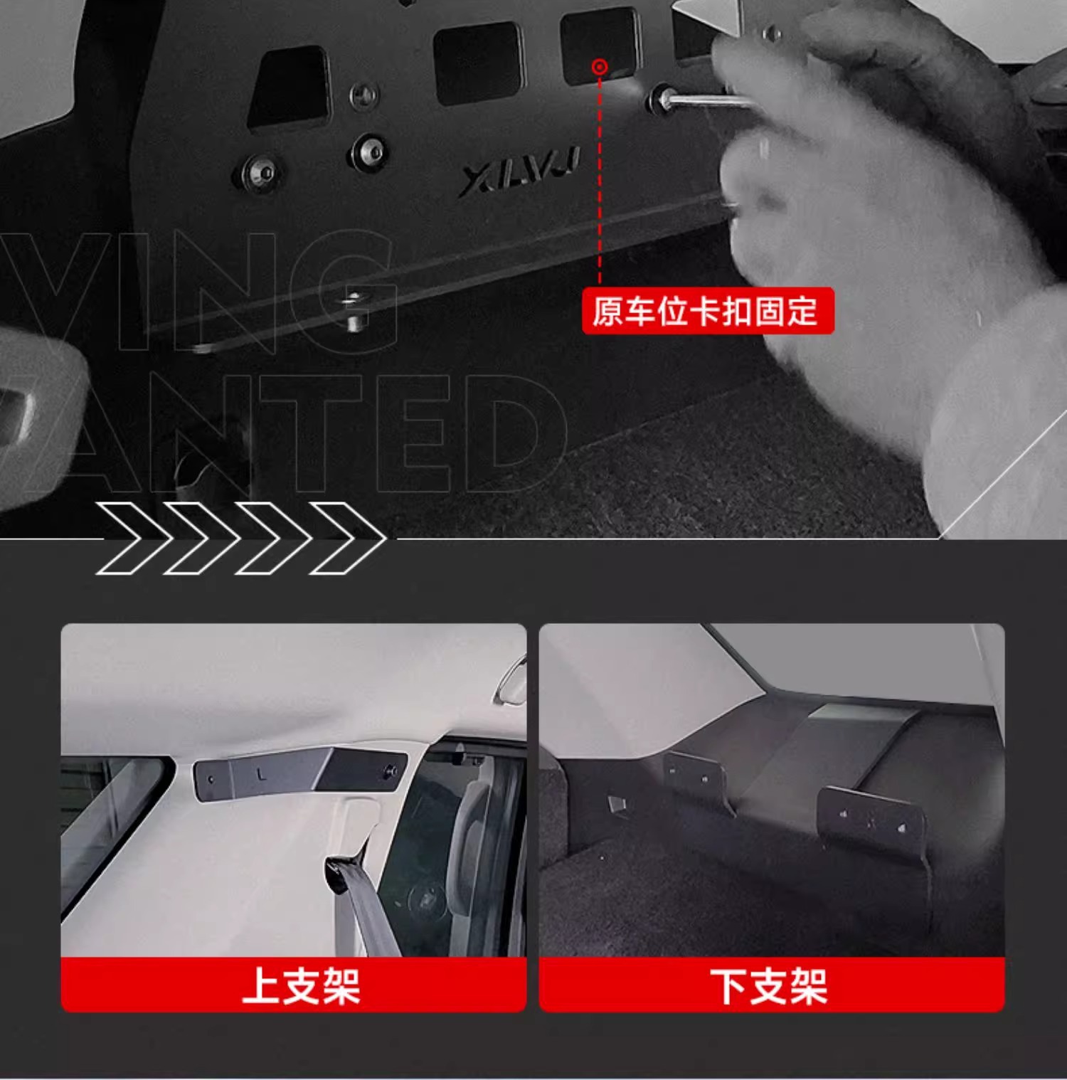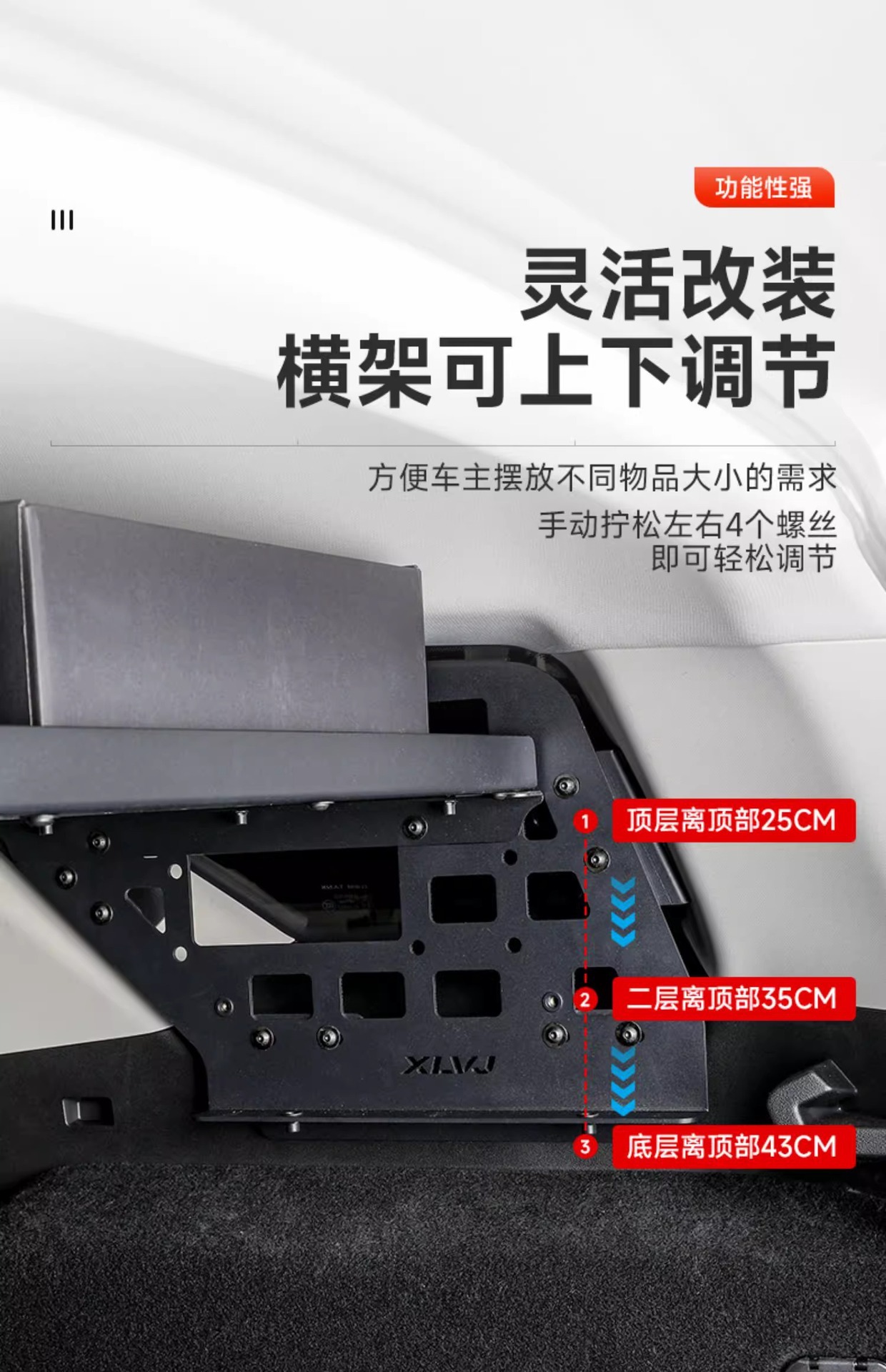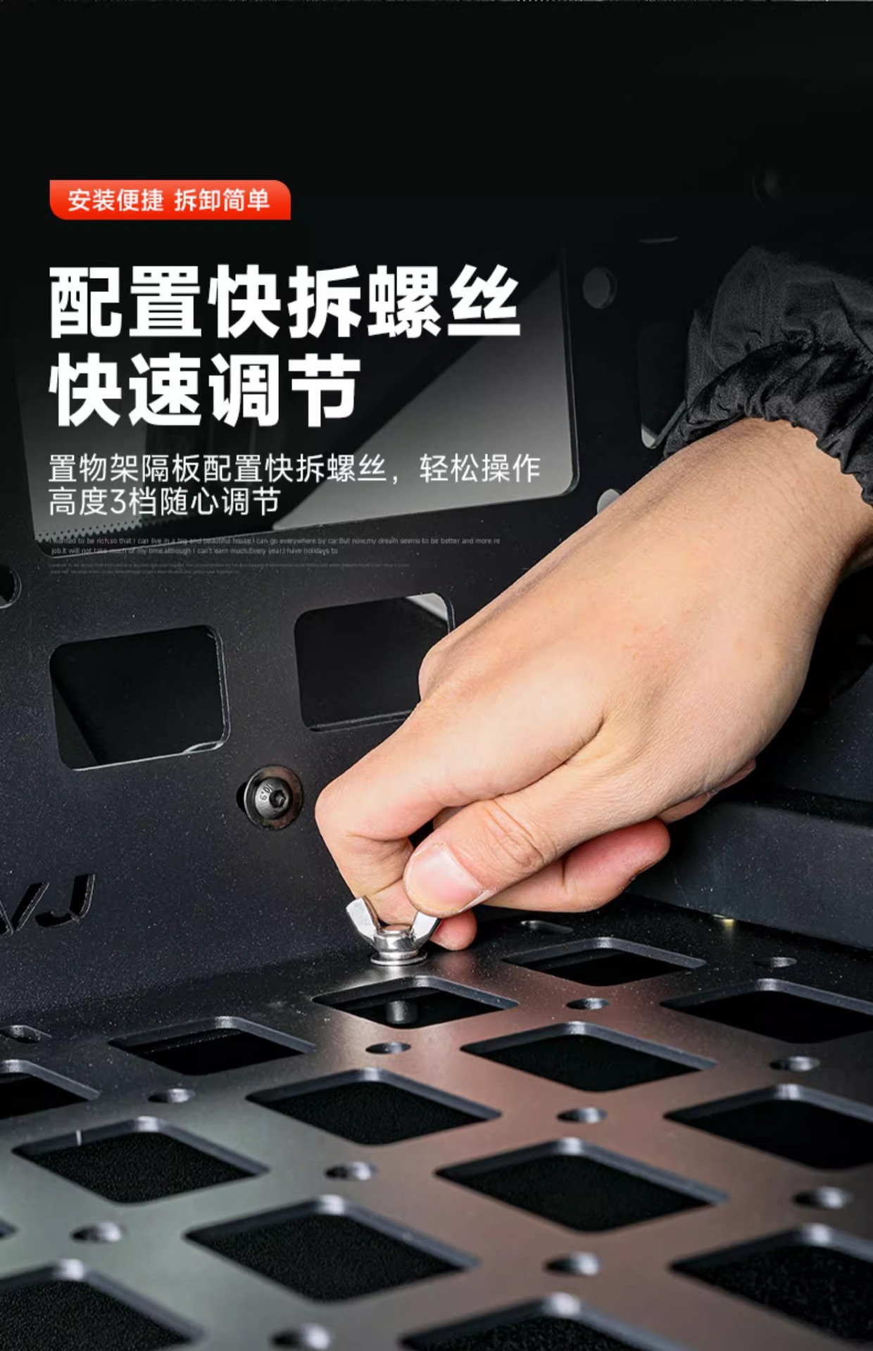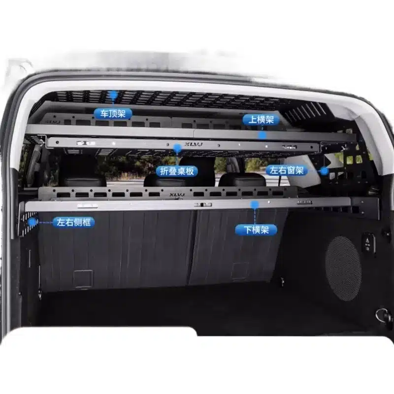 Tags: cargo side rack, interior cargo rack, molle panel, off-road rack, trunk organizer, vehicle storage system, window storage panel