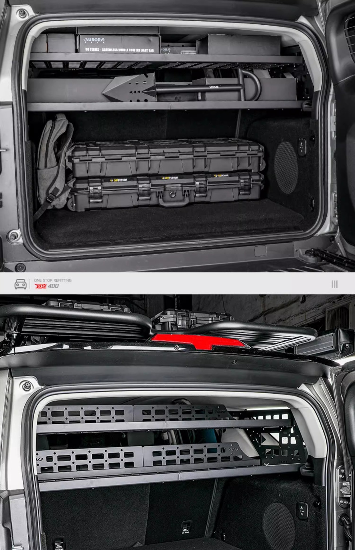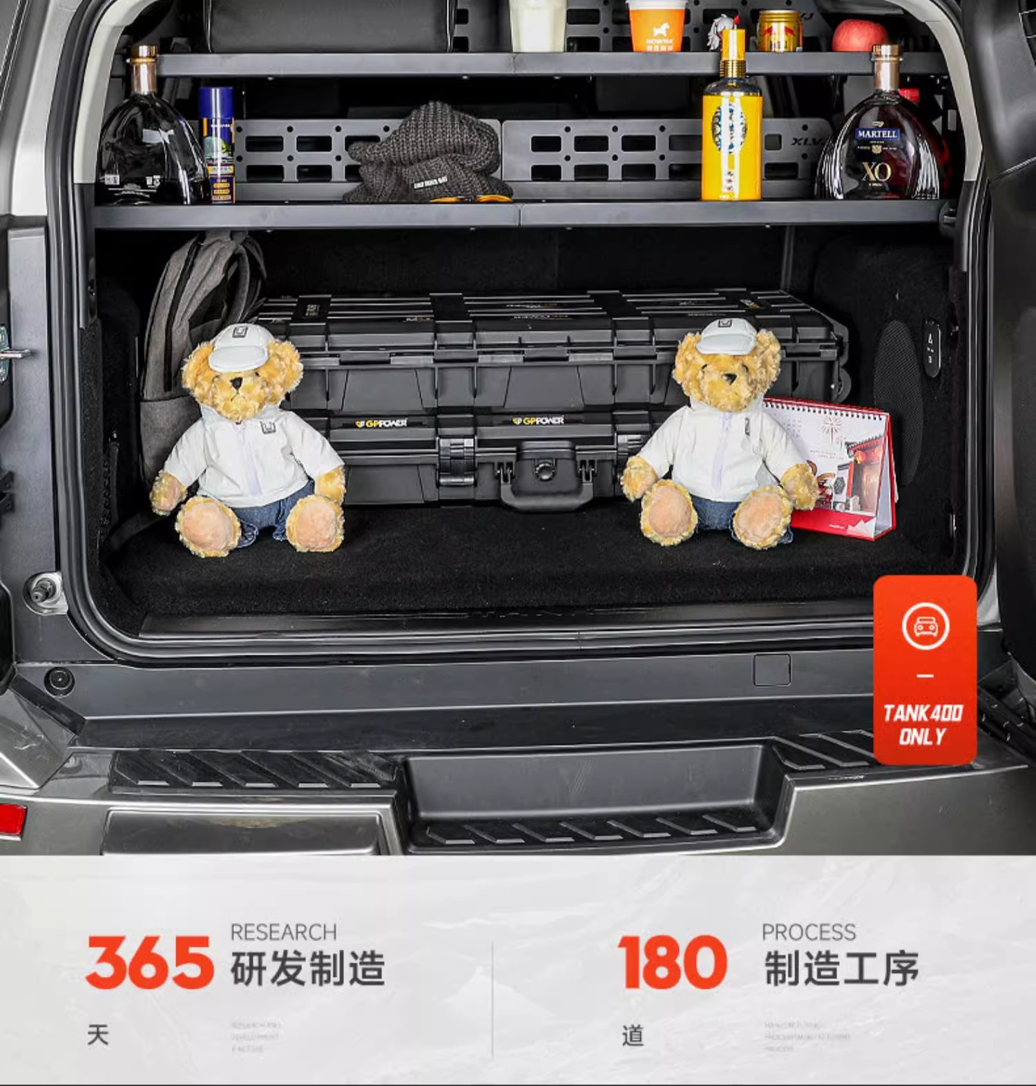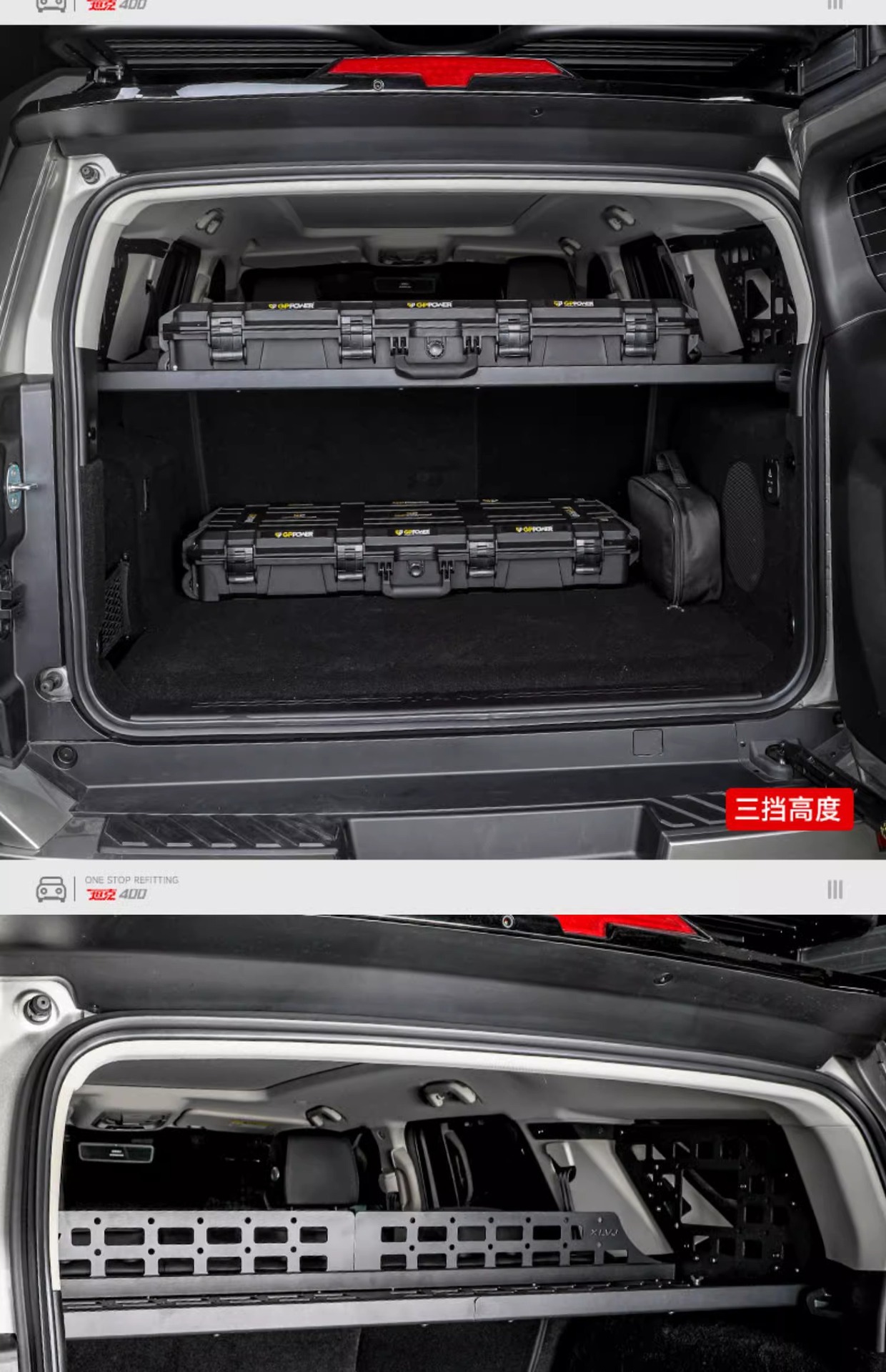 - Customized fitment specifically designed for the Tank 400 rear trunk side windows to maximize vertical storage space.