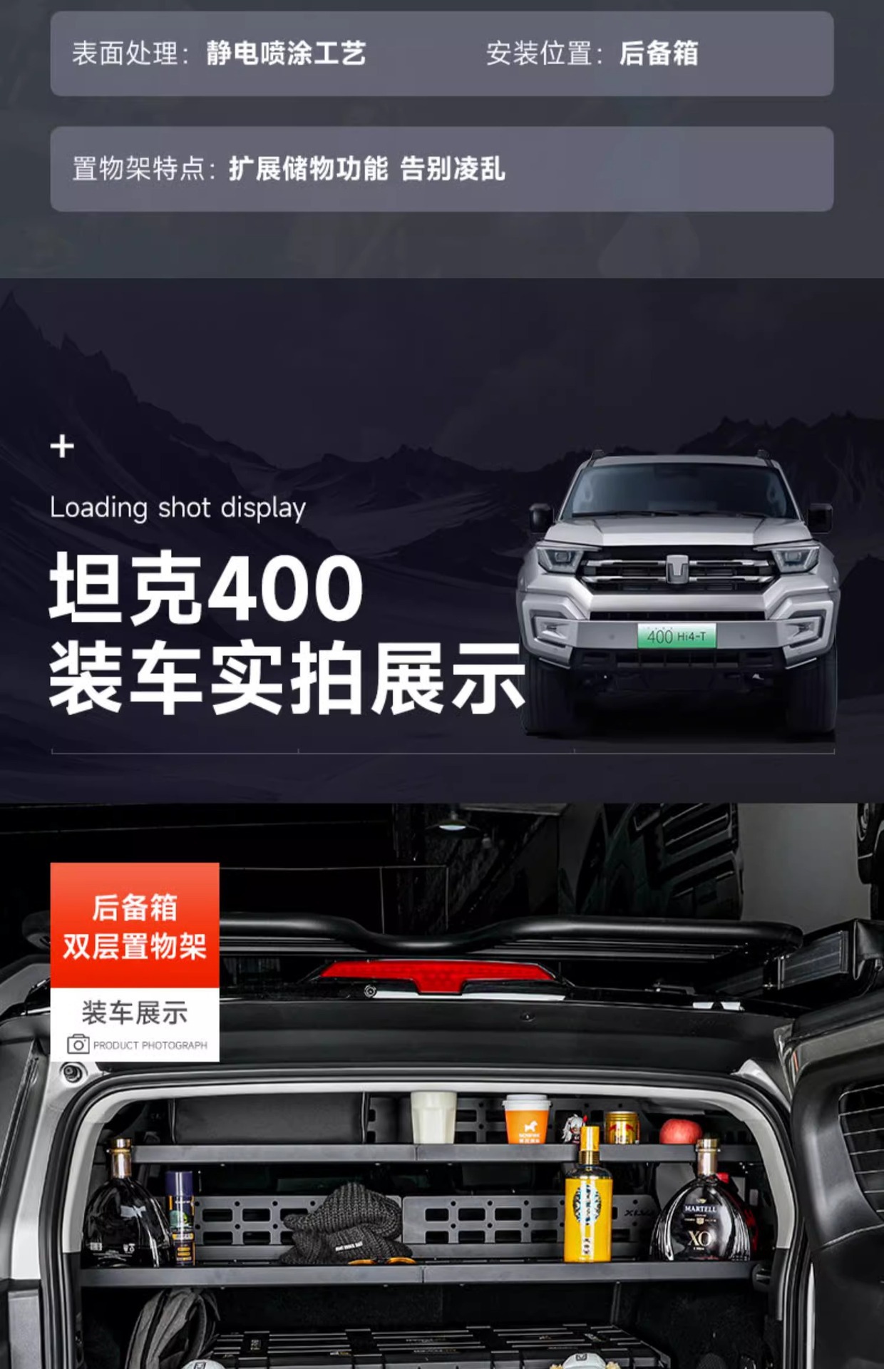 Be the first to review “Rear Trunk Side Window Storage Rack System and Cargo Organizer Panel for Tank 400” Cancel reply