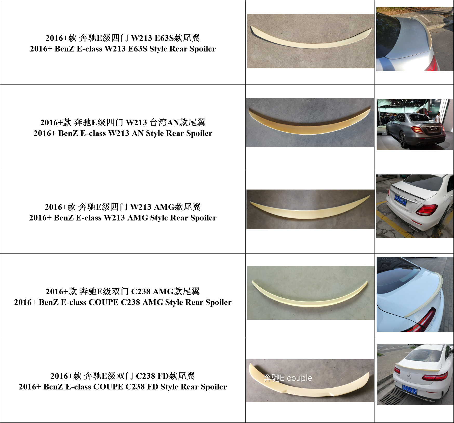 Upgrade your Mercedes-Benz E-Class W213 W238 Coupe with this high-quality rear trunk spoiler. Enhance aerodynamics and provide a sleek, sporty look to your car.