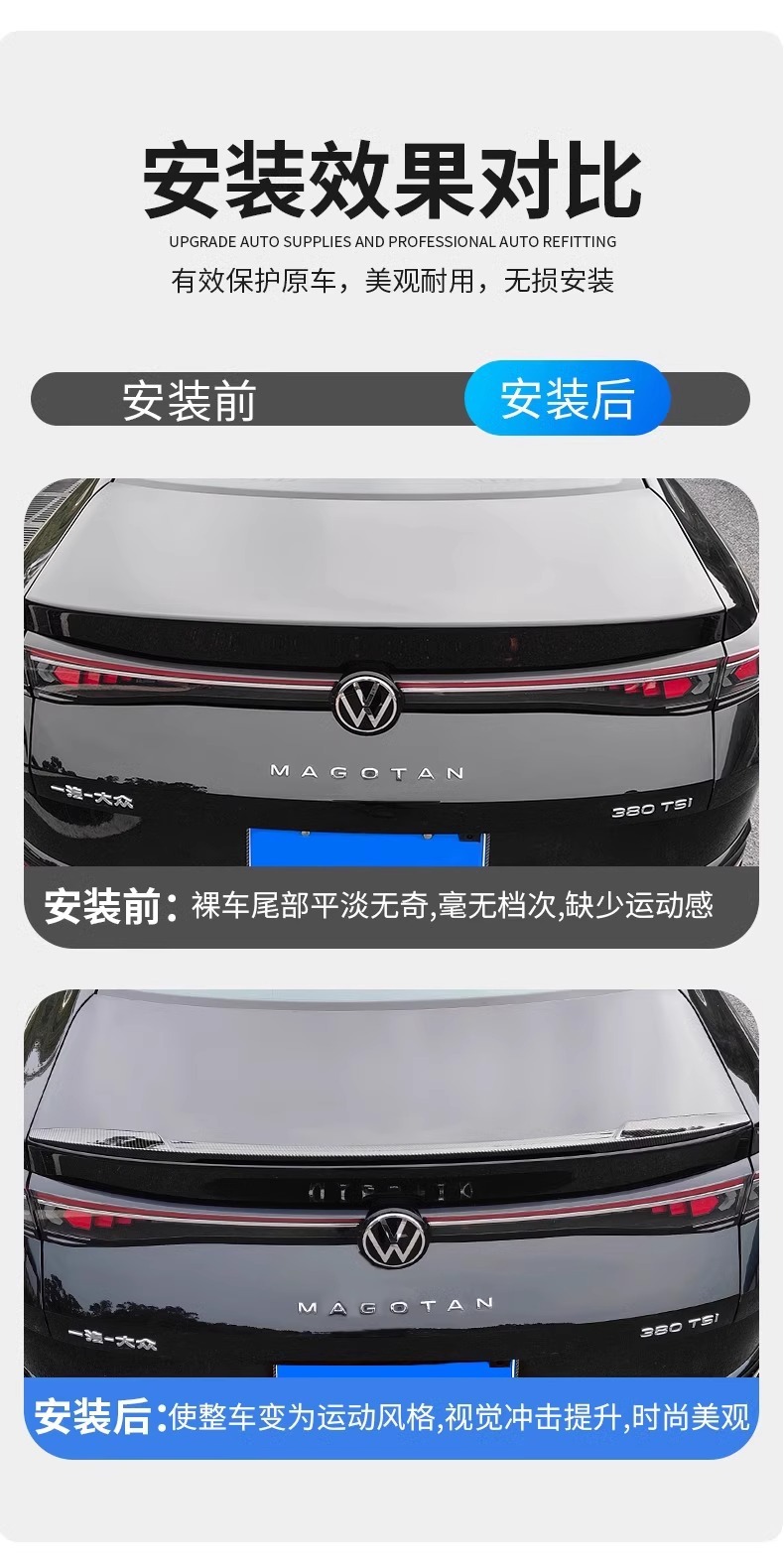 Upgrade your VW Magotan B9 with this MC style glossy painted rear trunk spoiler. Easy no-drill installation for a sporty design and improved aerodynamics.