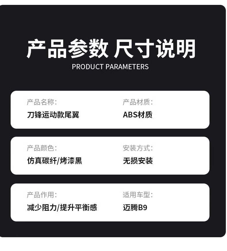 - Precise Fit: Molded to align with the trunk curves of the B9 series, ensuring a seamless look that mimics an OEM factory upgrade.
