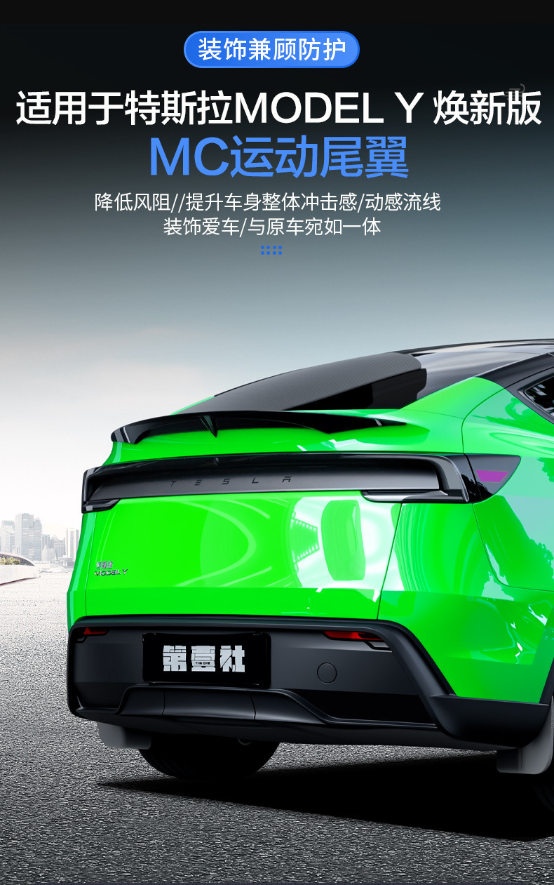 Upgrade your Tesla Model Y with this high-performance sport rear trunk spoiler. Enhance aerodynamics and achieve a sleek MC-style look with easy installation.
