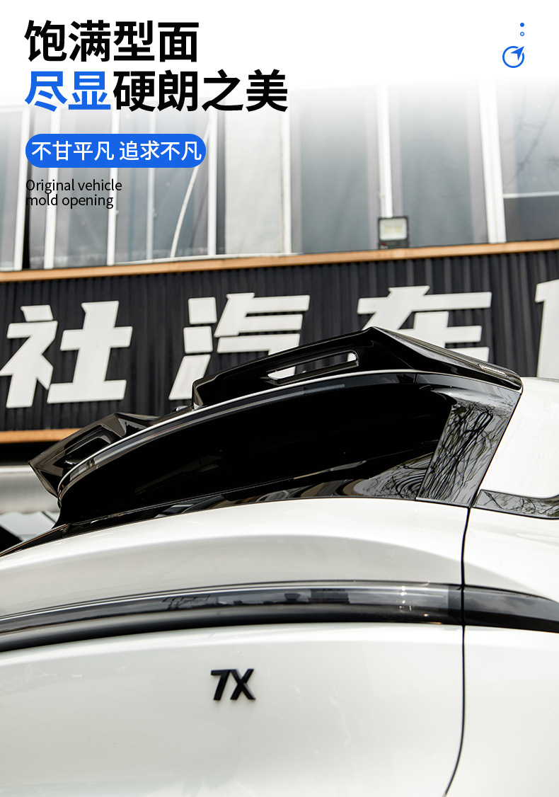 Tags: aero body kit, automotive exterior tuning, car tail wing decoration, carbon fiber texture wing, rear roof spoiler, trunk spoiler wing
